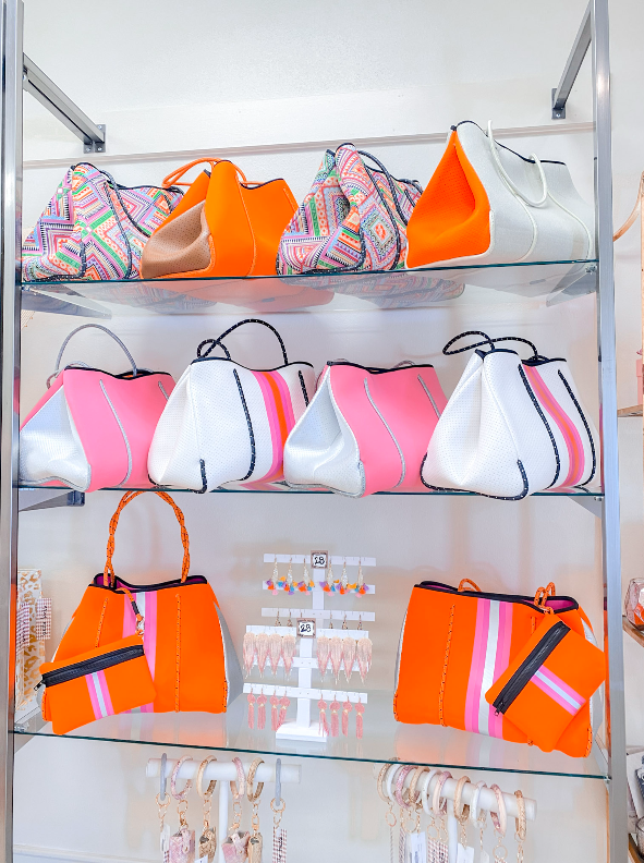 If you’re local to Baton Rouge, you’re likely familiar with the trendy and colorful clothing boutique Bella Bella—or at least with its catchy name. Since the original store opened 27 years ago, the boutique has expanded to two additional locations in Baton Rouge and one in Metairie. However, when the global pandemic hit last year, it hit local businesses hardest. Even for the multi-location boutique, temporary closures required creative solutions to keep business alive. Bella Bella’s answer? Shifting the entire concept of one of their stores. Tops and dresses were traded for beaded purses and party games, and Baubles by Bella Bella was born. We sat down with Bella Bella co-owner Ashley Giardina Thibaut for more on the Jefferson location’s new concept: