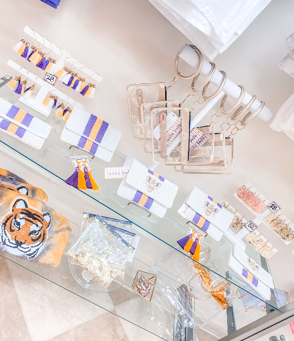 Baubles is a home décor, gift and lifestyle boutique. Inside the store, you will find different sections stocked with items of corresponding categories: bridal/bachelorette, travel, birthday/special event, home décor, Louisiana seasonal (think gameday and Mardi Gras), giftables, candles & scent, jewelry & handbags and holiday/seasonal.