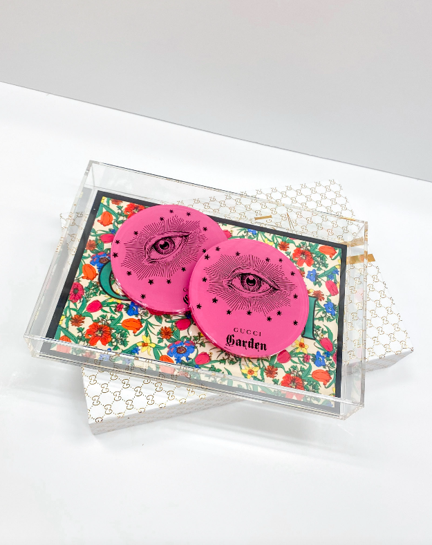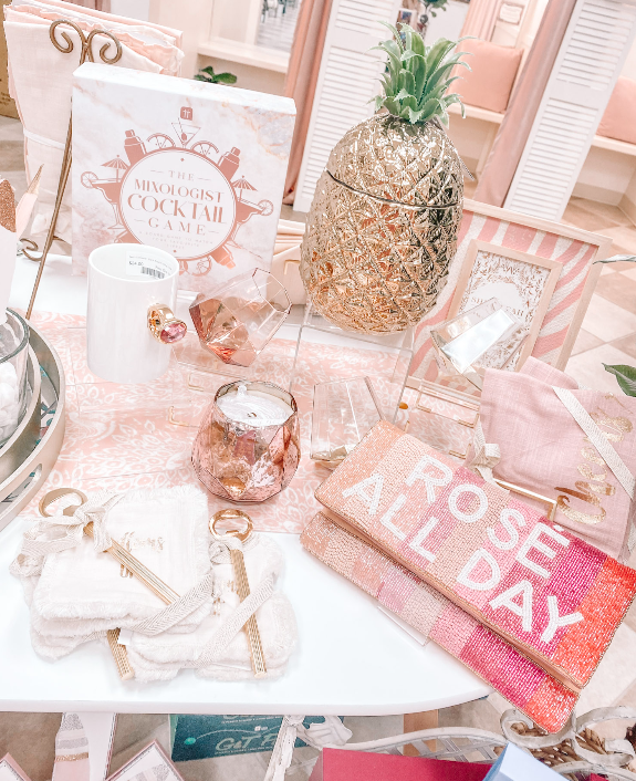 Right now, my favorites are the Gucci-inspired trays and coasters made by a young Texas artist, the grandmillennial- style housewares, and our best-selling Haute Shore bags.