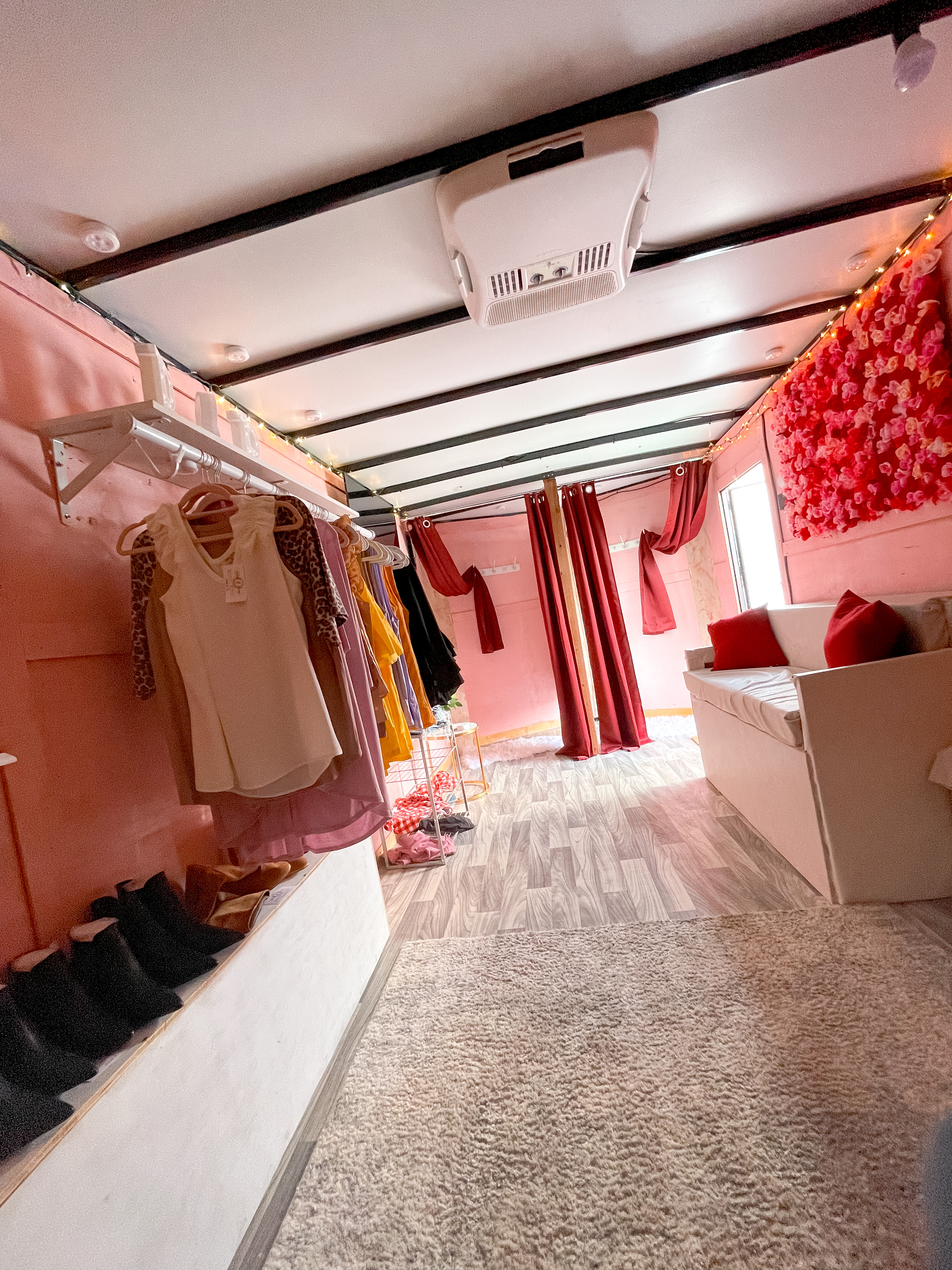 I launched Blush & Rouge in July 2020. I started with just an online storefront and stayed that way for about six months. I started popping up at different coffee houses and events not long into my boutique journey and thought it would be fun to bring a fun new way of shopping to Baton Rouge. My husband took the idea and ran with it. After a few months of planning and building, we held our first event with the mobile boutique in February 2021 and it’s been a hit ever since. On the weekends, I love taking the mobile boutique to different events. We are still online and do local pickup in the Baton Rouge area with boutique events on the weekends.