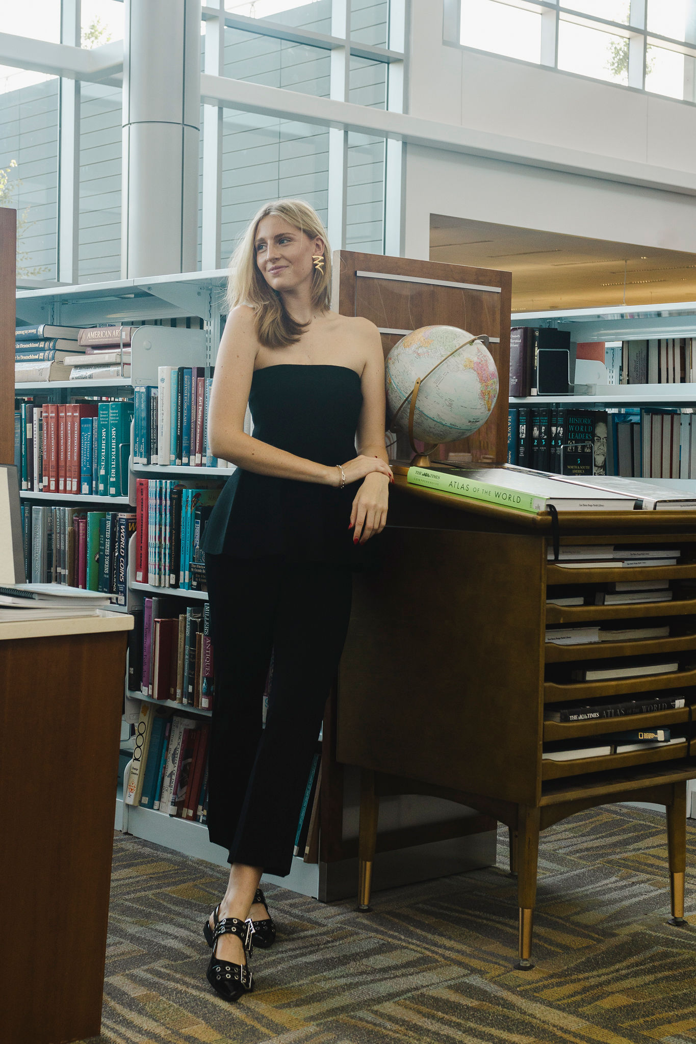 This month, the East Baton Rouge Parish Library’s Main Library at Goodwood is the backdrop as model Betsy Lindsey showcases staple items from local boutiques to upgrade your closet with a capsule wardrobe this fall.