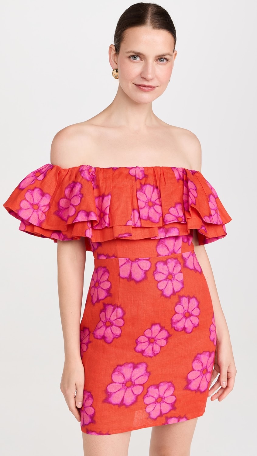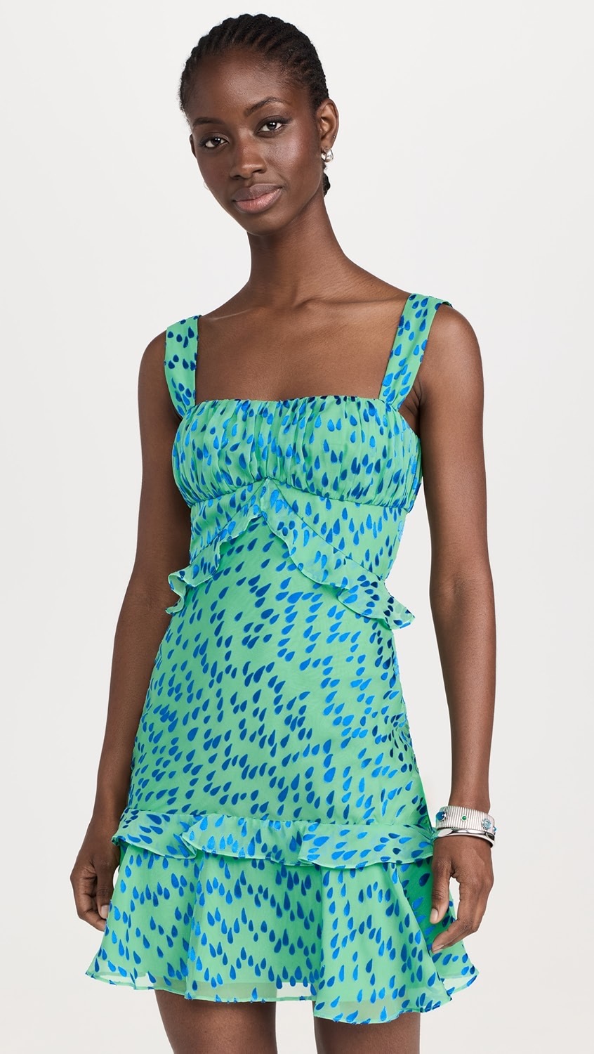 A: You want to be a bit dressier this round. Here are a few dresses that I love: This blue and green dress could work for an evening cocktail event or for something during the day, which is exactly what you’re looking for! This Rhode off-the-shoulder dress is slightly more casual, but the silhouette is fun.