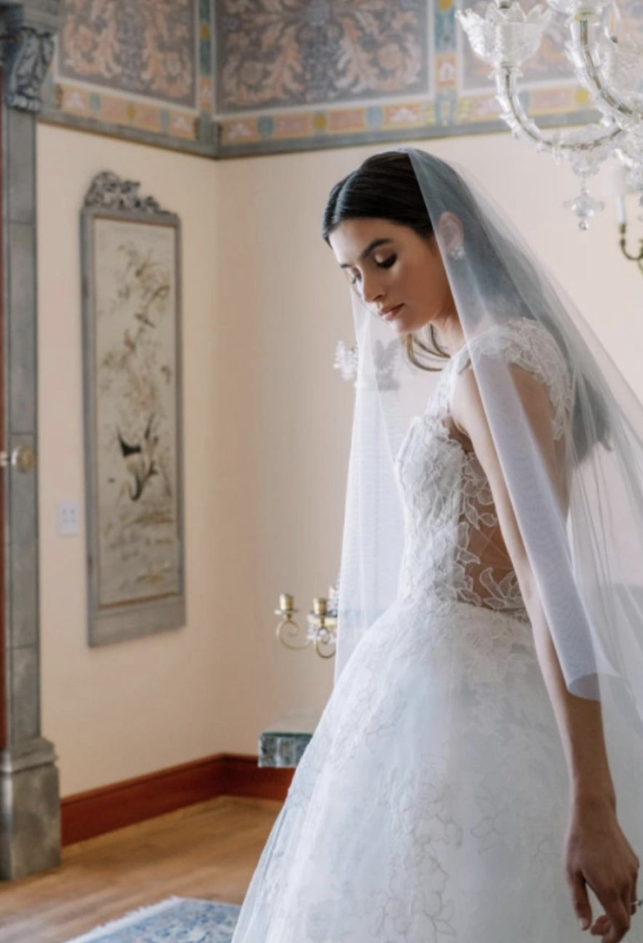 “Something borrowed” is perhaps the most sentimental of the four. By borrowing something from a happily married couple, the newlyweds will step into their new union with hopes that good fortune will somehow be transferred from their married friends. “I absolutely love when brides repurpose their mother’s or a family member’s veil,” Sims says. “Most people get it adjusted to get rid of any details that that really date it, but I’ve seen veils beautifully transformed, and I really appreciate when brides do that.”