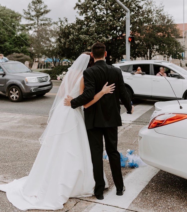 “When the order was put in place and it was clear that our wedding wasn’t going to happen as we had planned, I had a hard time accepting it at first,” admits Melissa Currier Landry, who was married on April 18 at Sacred Heart Catholic Church to her fiancé, Alex. “But in the end, I realized that it was just about us two. It’s not about everyone else or everything that goes into a wedding. It’s just about the love that you share.”