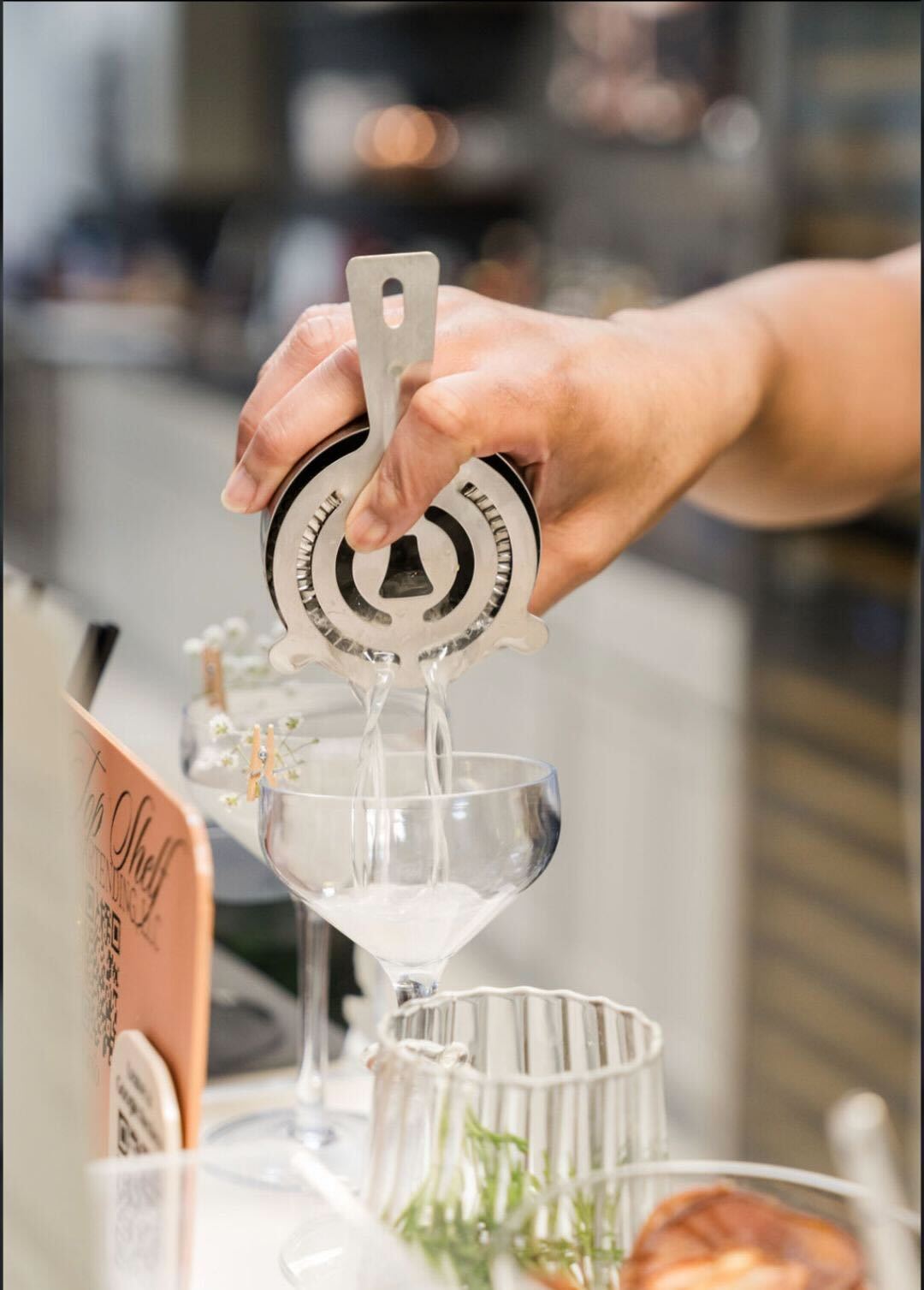 “First, we’d get to know the crowd by discussing preferences, dietary restrictions and any special requests with the couple, ensuring a drink selection that appeals to a variety of tastes,” says Andrea Moore, owner of Top Shelf Bartending. “A signature cocktail is a great touch, reflecting the couple’s personality or story. Presentation is key. Using beautiful garnishes, elegant glassware and a clean setup helps to enhance the experience.”