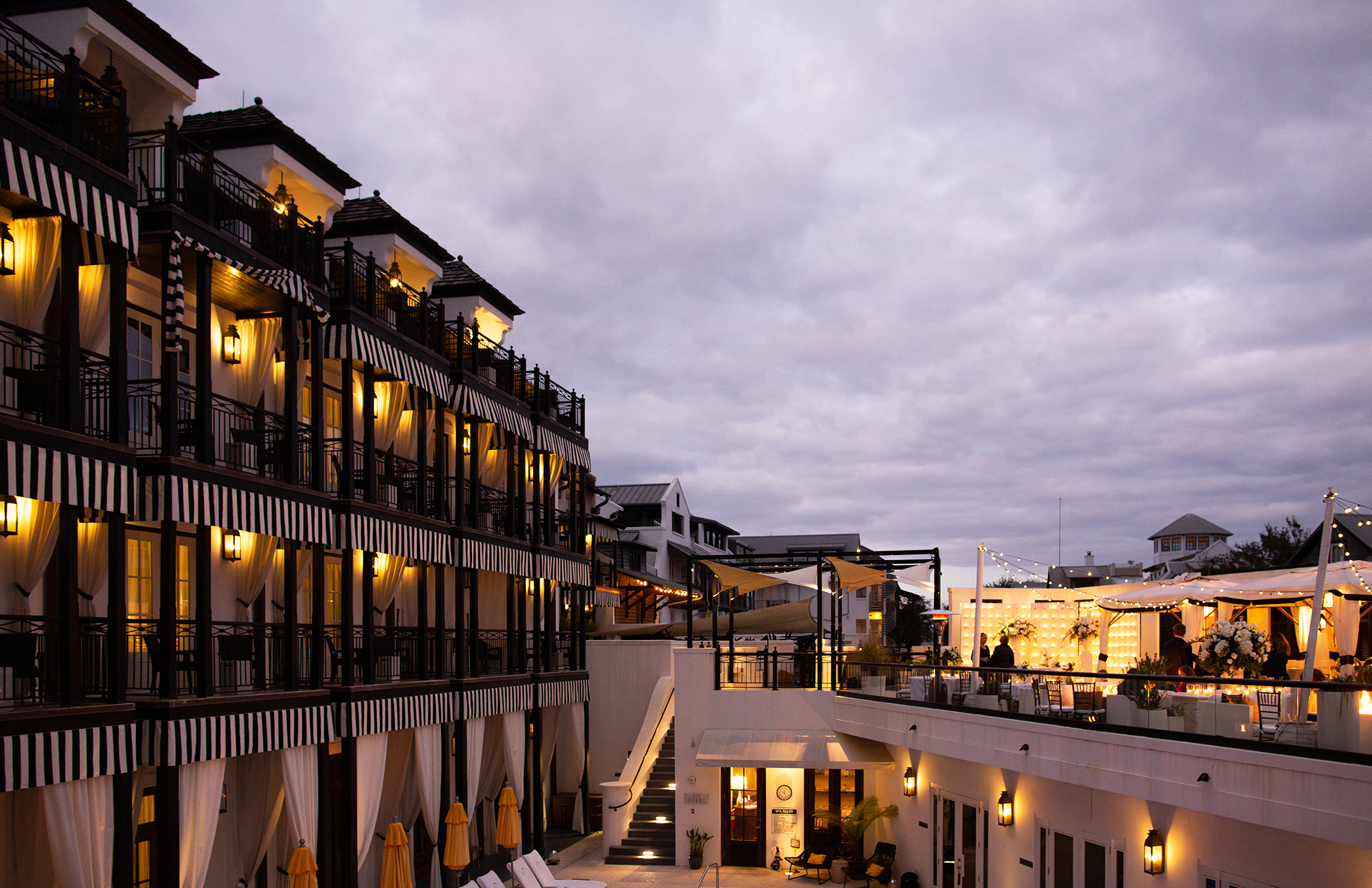 Inspired by architecture of the West Indies, Charleston and St. Augustine, the community of Rosemary Beach boasts classic homes and carriage houses, wood-plank pathways, bubbling fountains and more. Vacationers flock to this stretch of 30A during the summer months, but it proved to be just as charming (and less crowded) for the winter wedding of Kelly Mondello and Scott Landry. The venue was a natural choice for this couple—Kelly’s family had vacationed there for years, and Scott fell in love with it when he joined them. Kelly and Scott exchanged nuptials on the rooftop of The Pearl, a boutique hotel exuding Southern charm. “I love a destination wedding, especially when there is a connection between the location and the couple,” says Leslie Campbell, the bride’s sister who also served as her wedding coordinator. “What wonderful memories to have and always a special place to continue to visit as a married couple!” Photos by Jeannie Frey Rhodes Photography.
