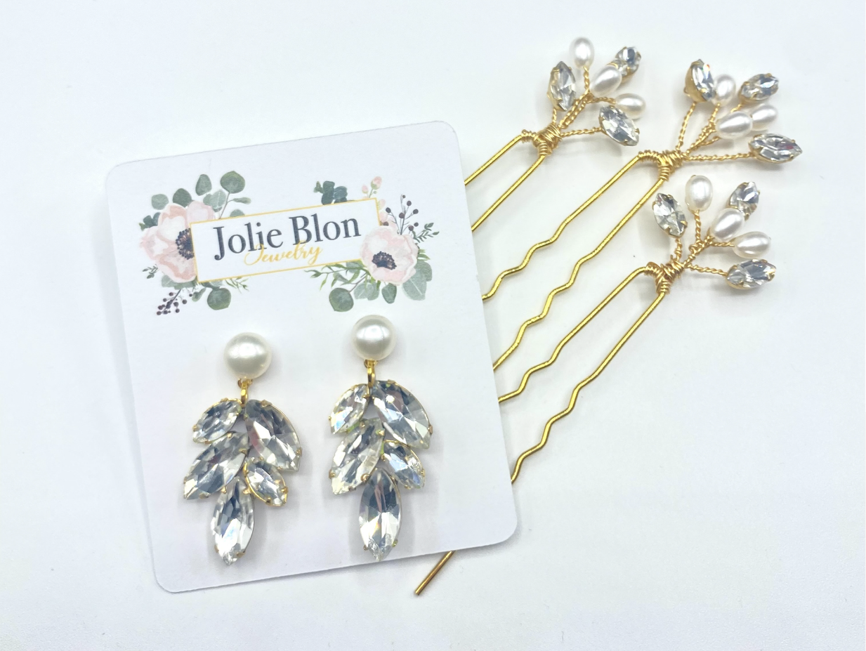 My custom rhinestone earrings and hand-twisted earrings are the two most popular styles. Both items are completely customizable.
