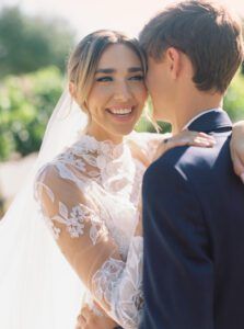 Before Larry proposed, Meredith casually mentioned on a family trip to the Santa Ynez Valley that a wedding among the vineyards would be magical. It was an offhanded remark, nothing more than a fleeting thought. Her mother, Debbie Landry, privy to the imminent proposal, latched onto it and began researching venues and dates. Her scouting led to Sunstone Winery in California, and Meredith realized her passing fancy could become reality.