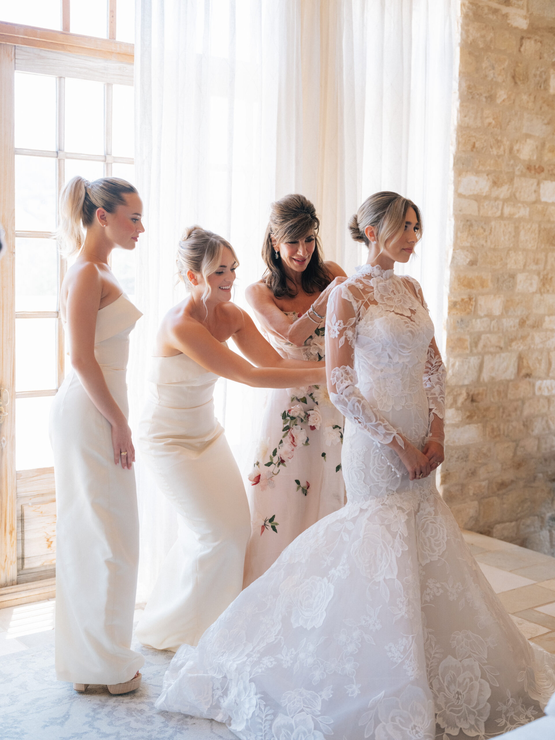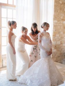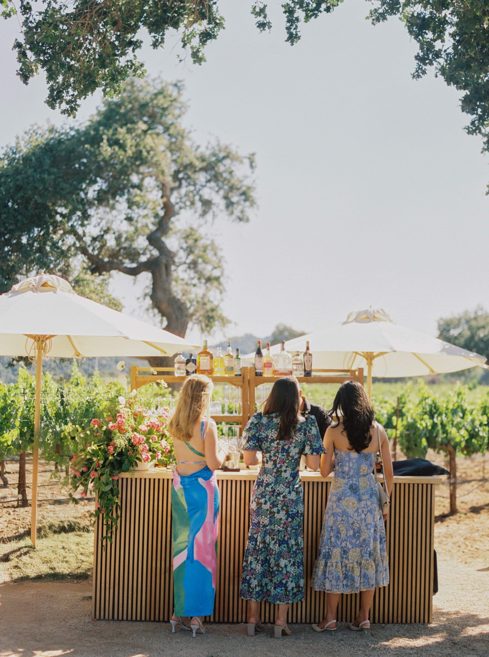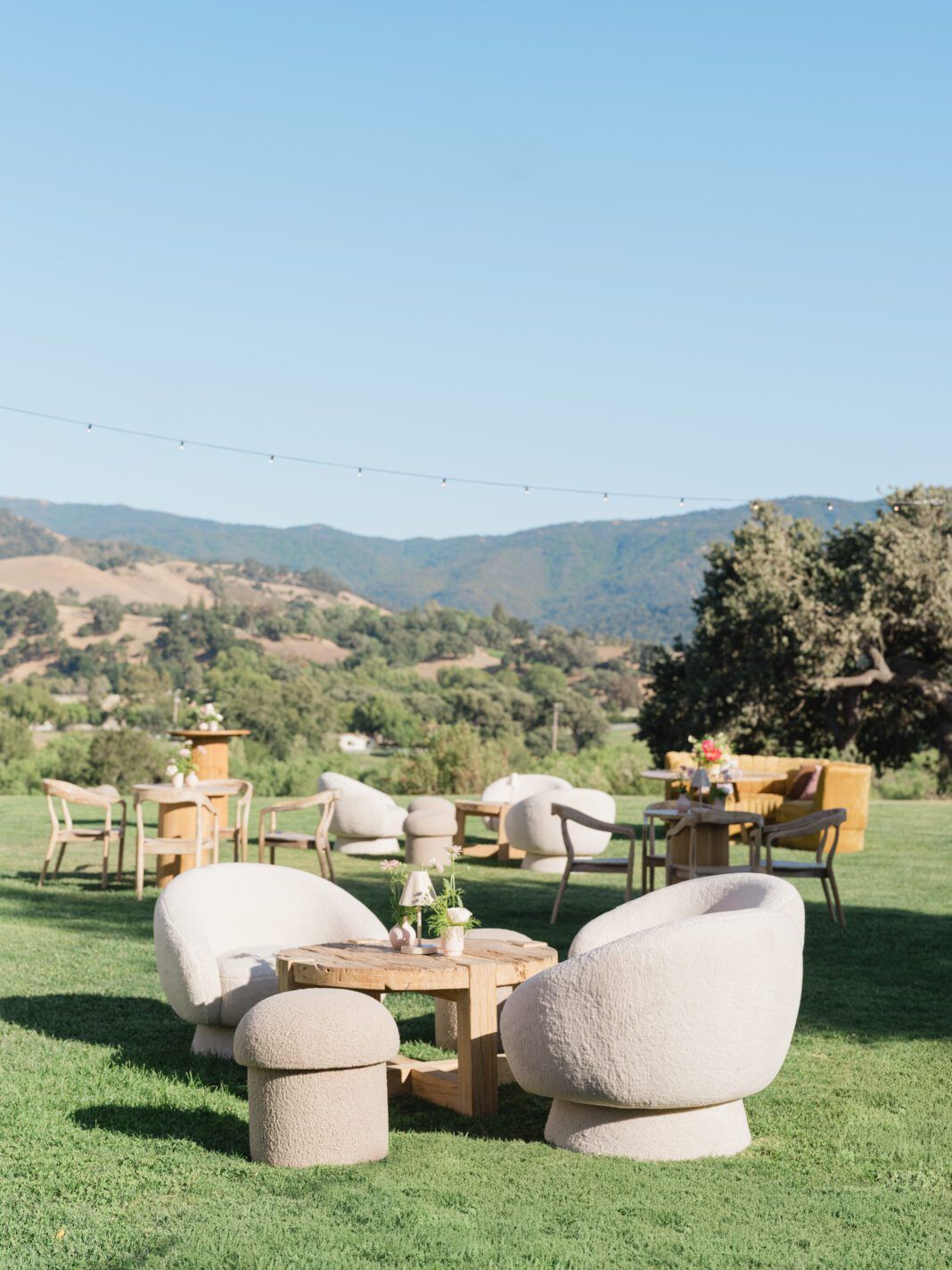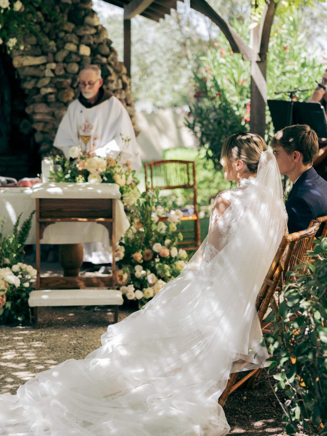 The couple had envisioned a full Catholic mass at Old Mission Santa Inés in Solvang, drawn to its hand-painted walls and proximity to Sunstone Winery. But when the families visited the mission, they discovered the ceiling had begun to cave in, and repairs wouldn’t be complete until after the wedding. With no other churches nearby, concerns mounted. Meredith turned to her mother, whose eye for design and resilient attitude made her a perfect party-planning partner. “My mom has always had the best parties. Everything she touches is amazing,” says Meredith. “I just kept thinking to myself, ‘Just trust Debbie.’ It was a team effort, and I absolutely couldn’t have done it without her.”