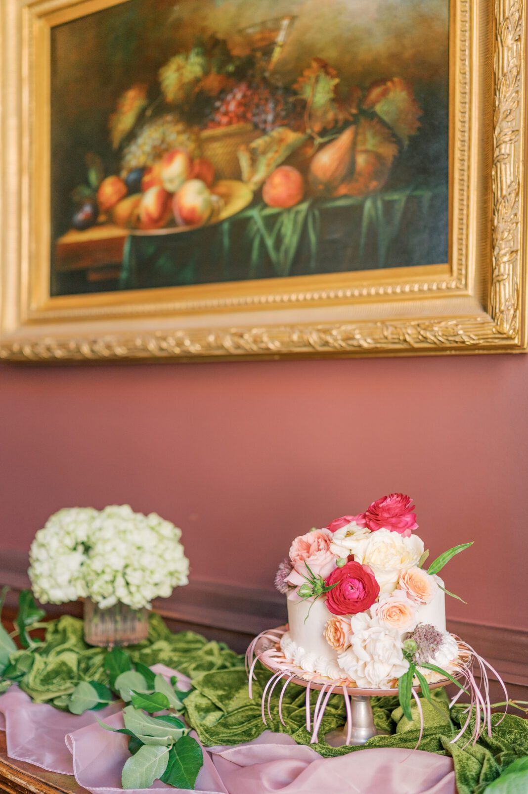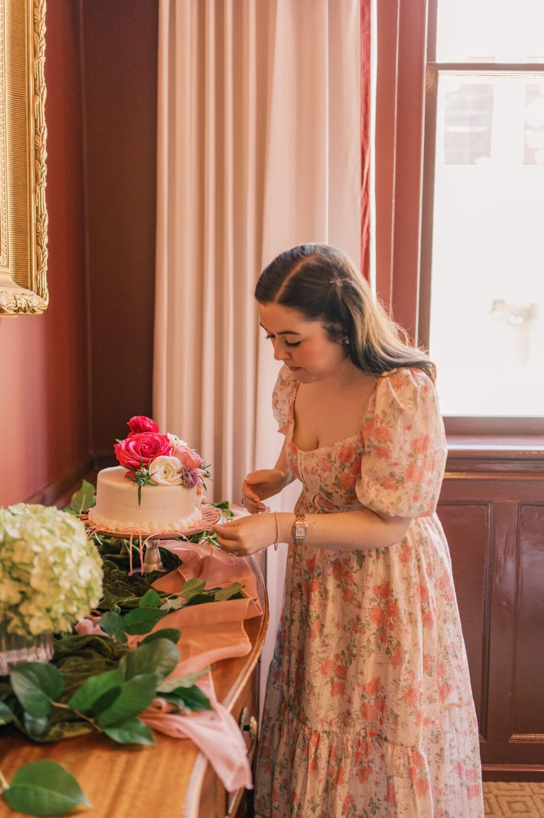 Hosted the morning before her March 1, 2025, wedding and ahead of the ceremony rehearsal, Lewis and her bridesmaids carried the flowers to the rehearsal that evening. “Cheryl made everyone there feel special, but especially me,” Lewis says. “The room was so beautiful that it took my breath away when I walked in–and I shed a few tears. It was the loveliest gesture from a woman who means so much to me.”