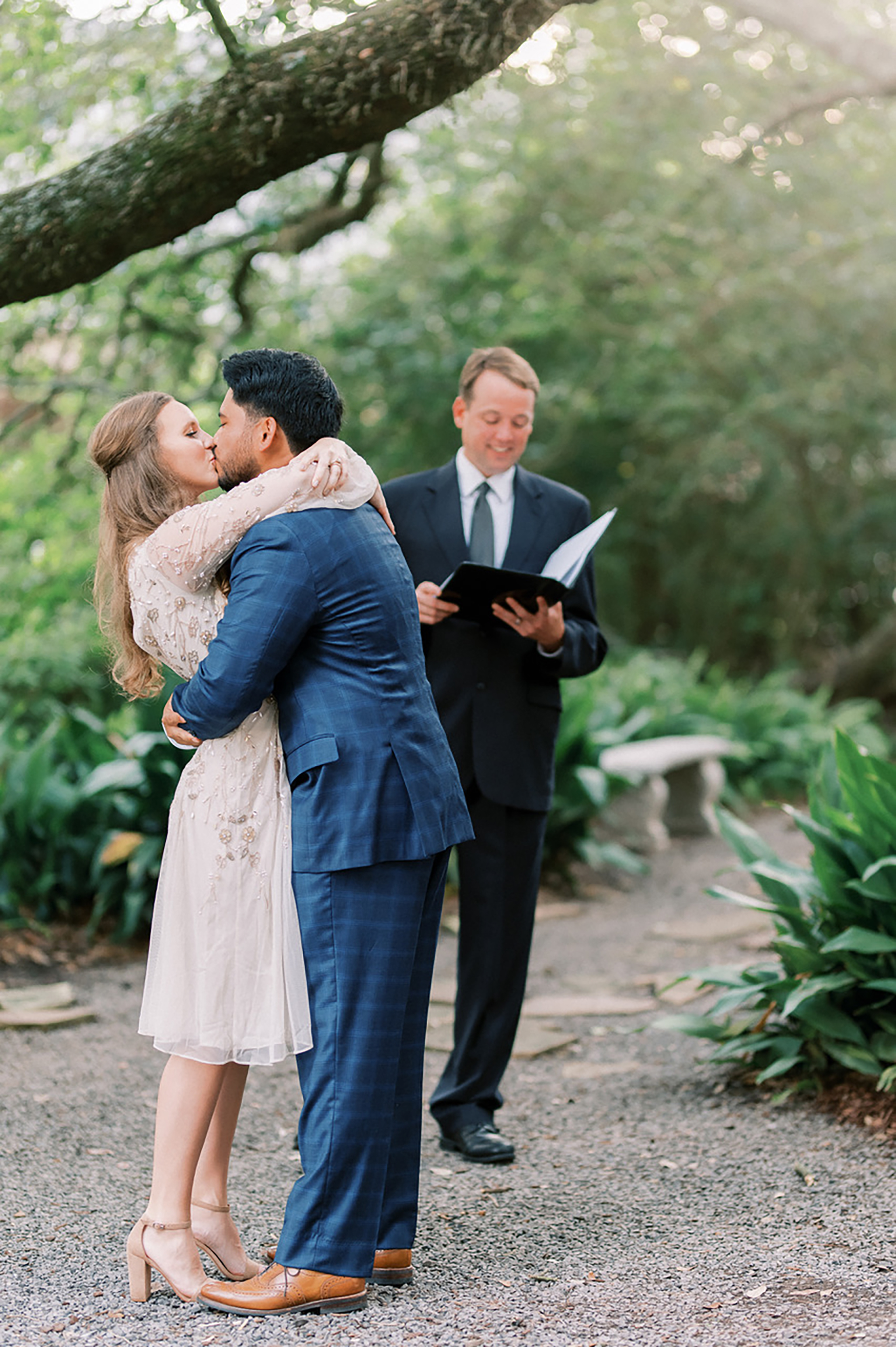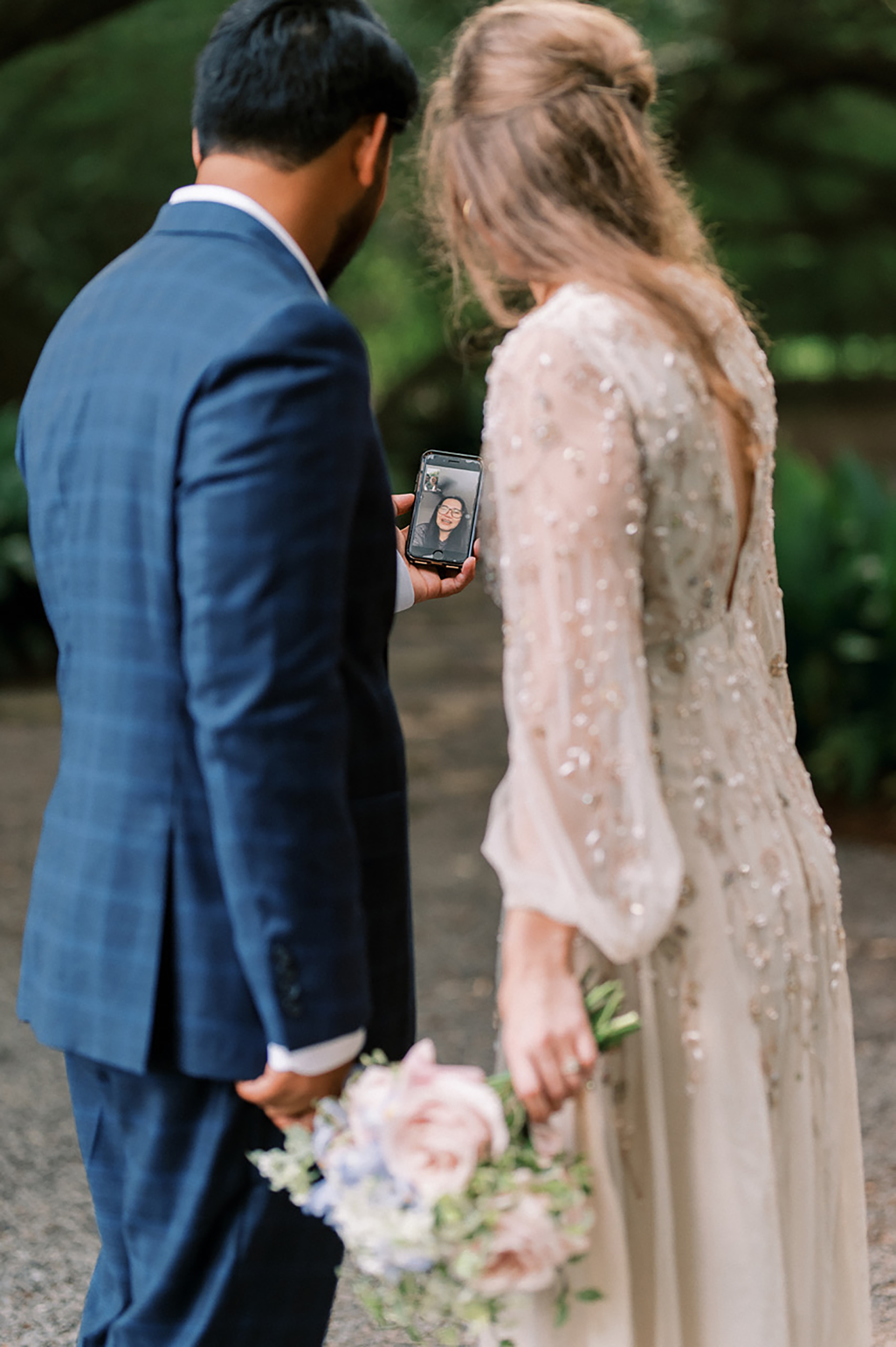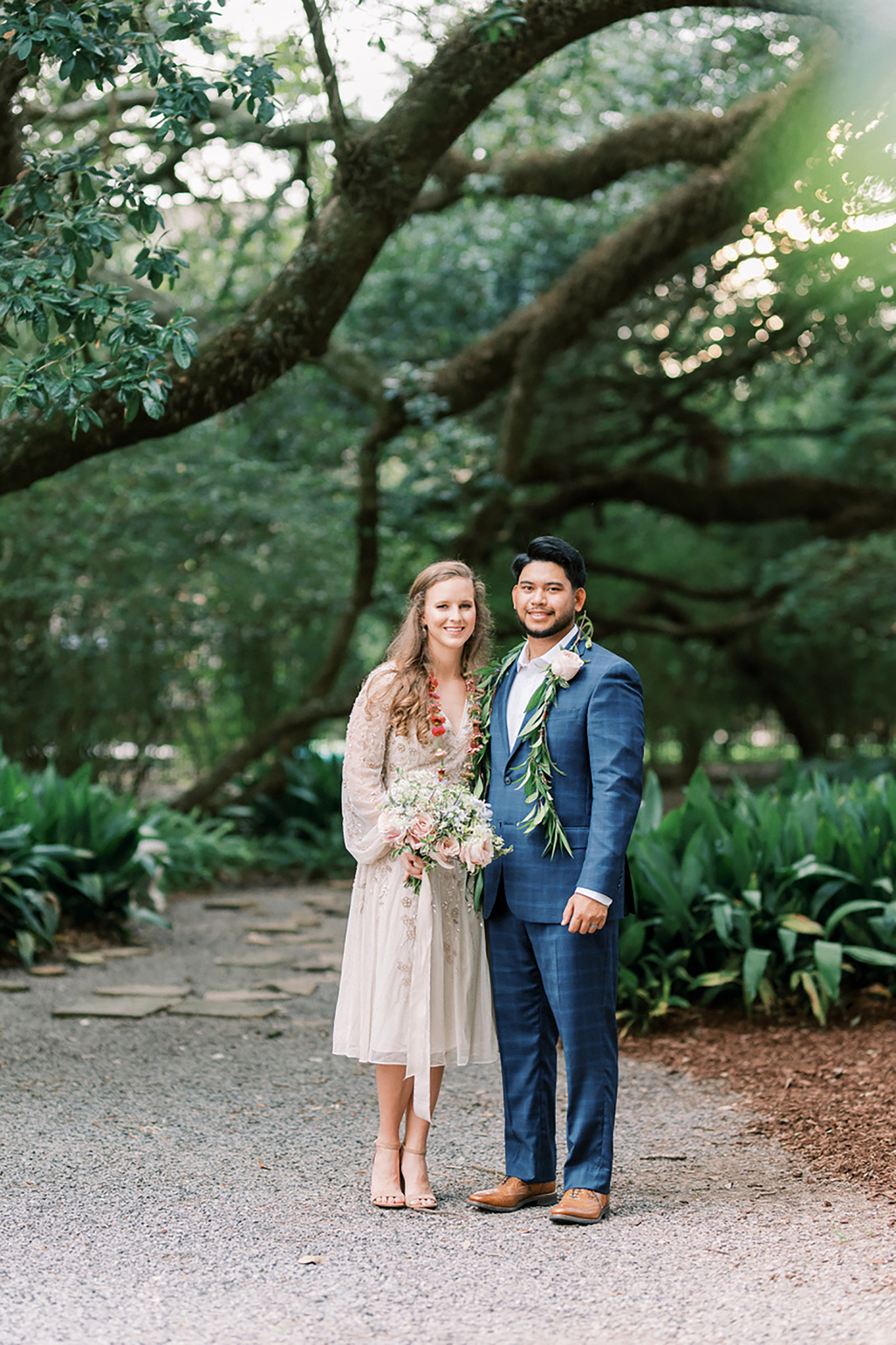 “We originally planned to wait until the fall so that our entire family and bridal party could be there in person,” says Anna Claire, noting the obstacle that came with Rex’s family residing in Hawaii. “But we decided that we would have a small vow exchange in my parents’ neighborhood now and have a small, intimate celebration with our people later.”