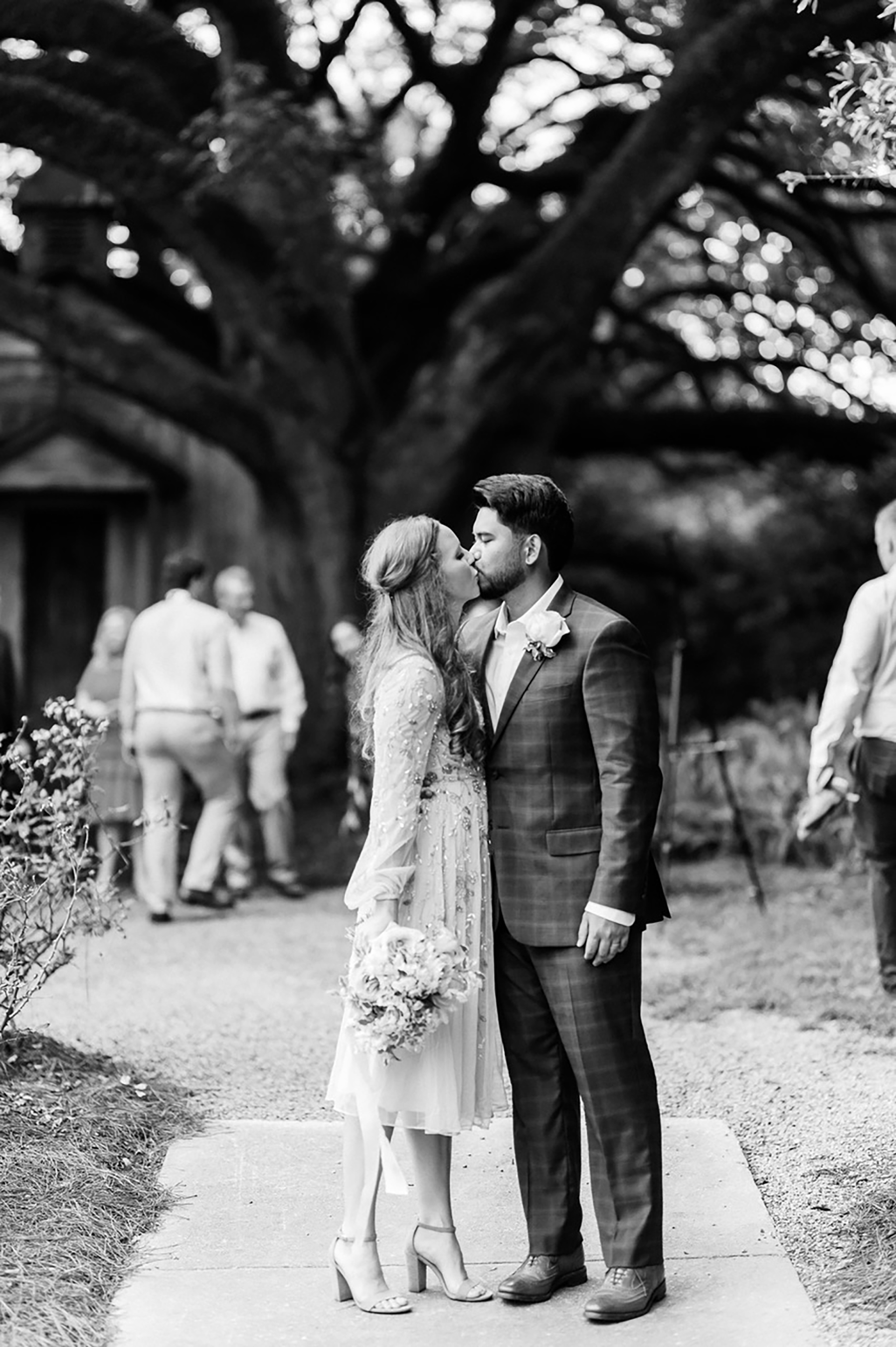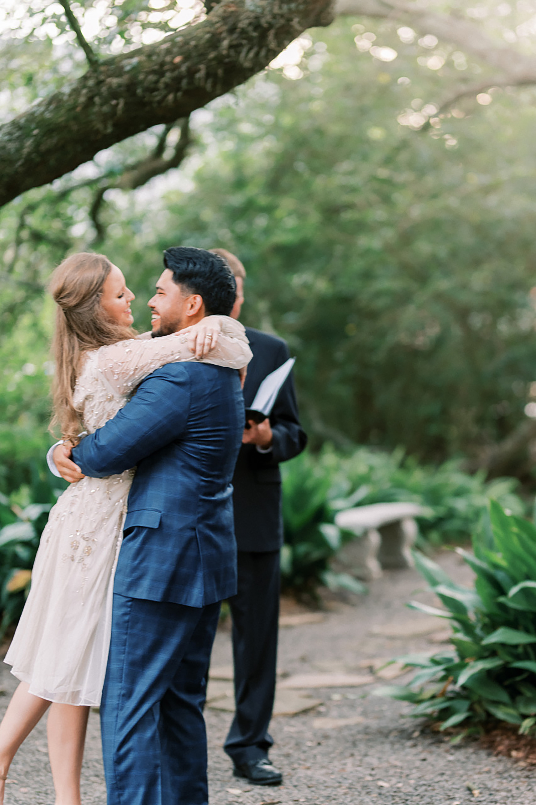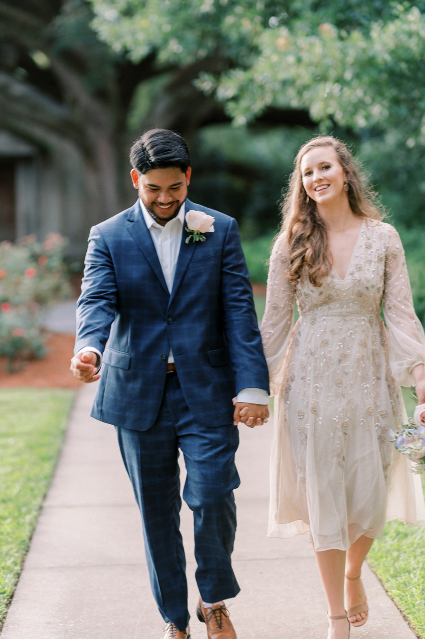 “We originally planned to wait until the fall so that our entire family and bridal party could be there in person,” says Anna Claire, noting the obstacle that came with Rex’s family residing in Hawaii. “But we decided that we would have a small vow exchange in my parents’ neighborhood now and have a small, intimate celebration with our people later.”