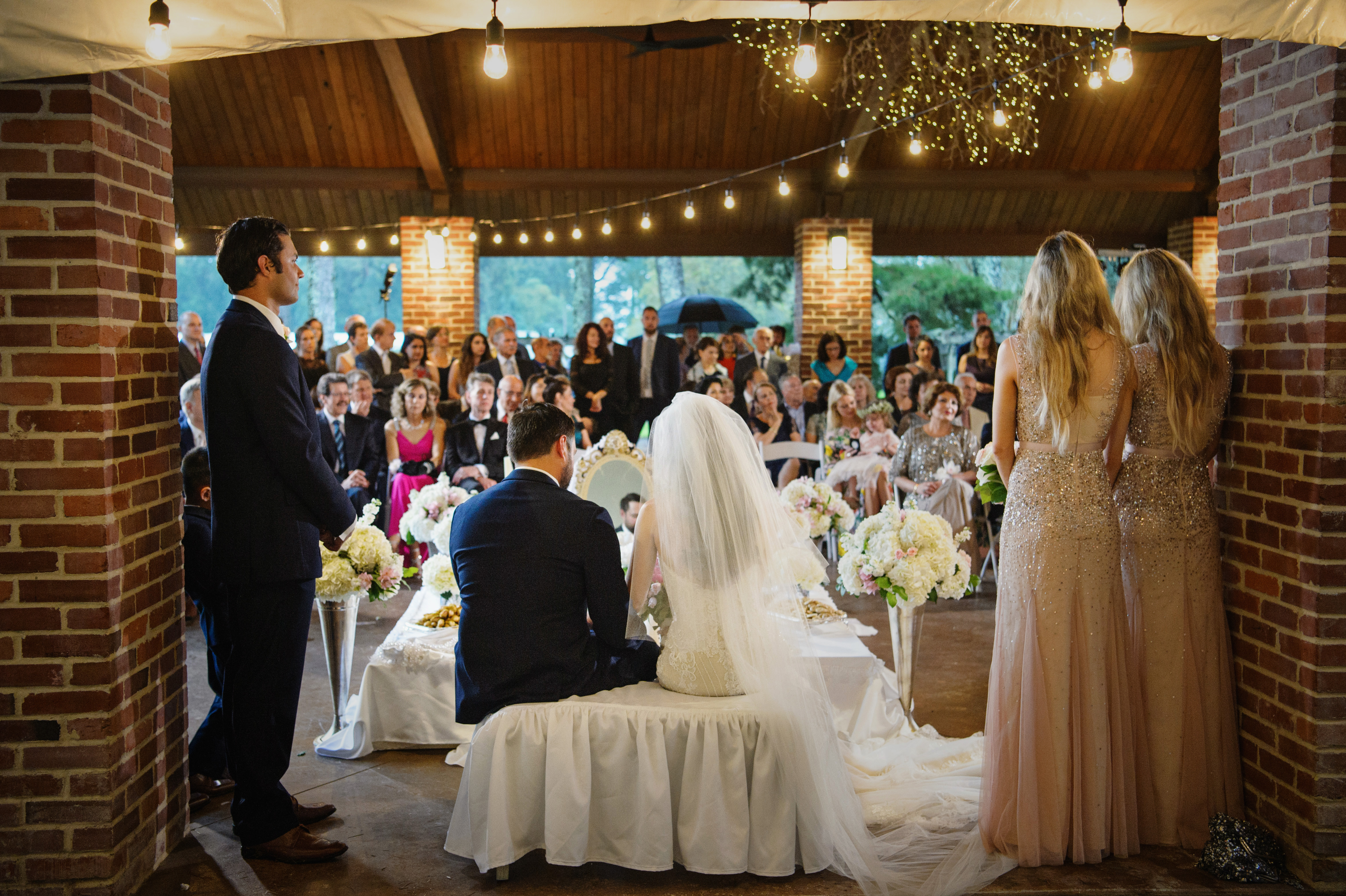 Favorite elements of the big day: “The bridal prep was perfect,” says Azeen. “My friends came from near and far, and it was so special to be with them that day. I was kind of in a tizzy during my actual wedding because very little went as planned. But the beautiful thing is that it enhanced the truly important memories. I still tear up when I think of how wonderful my husband was that day and how beautiful our first dance was. And my bridesmaids and family, they were amazing. At one point, we said, ‘It’s not a wedding. This is a rained-out Louisiana tailgate party.’ Then, it became a blast! Friends and I took the mic and everyone was cutting a rug. I savor all of those memories, even if we look like a soggy mess in our pictures!”