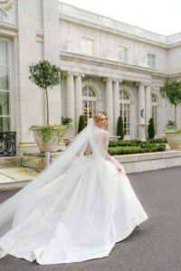 “I immediately remembered seeing this TikTok of a bride at Rosecliff Mansion, and I just couldn’t get it out of my head,” Madelyn says of the venue, which was the site of filming for the first The Great Gatsby, in addition to now serving as a museum. “They were originally booked solid for two years, so the August Events team showed me so many other amazing venues, but nothing felt exactly right. Then, one day in December, I got a call from them telling me that there had been a cancellation at Rosecliff and that the venue was now available on September 6. It felt like fate.”