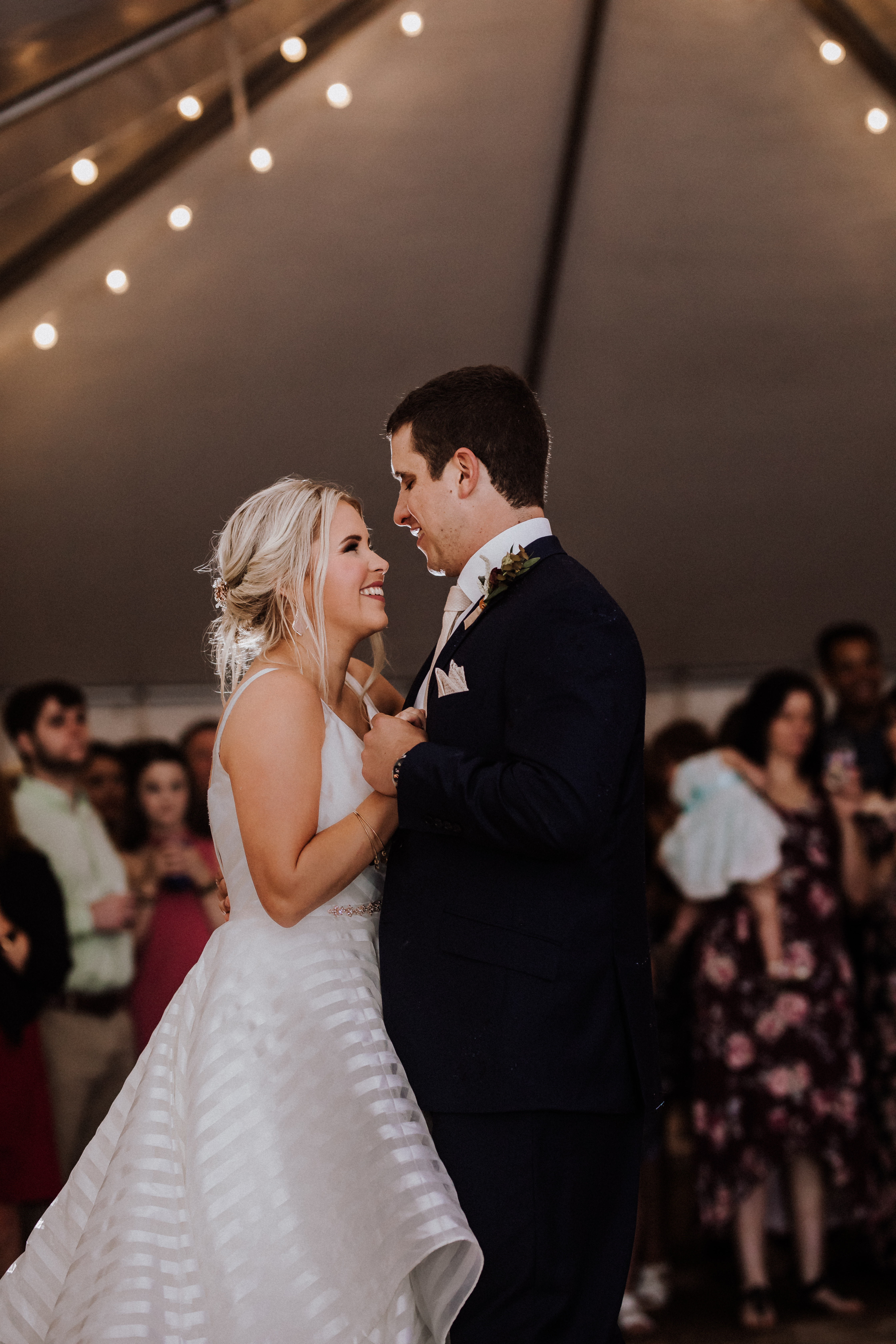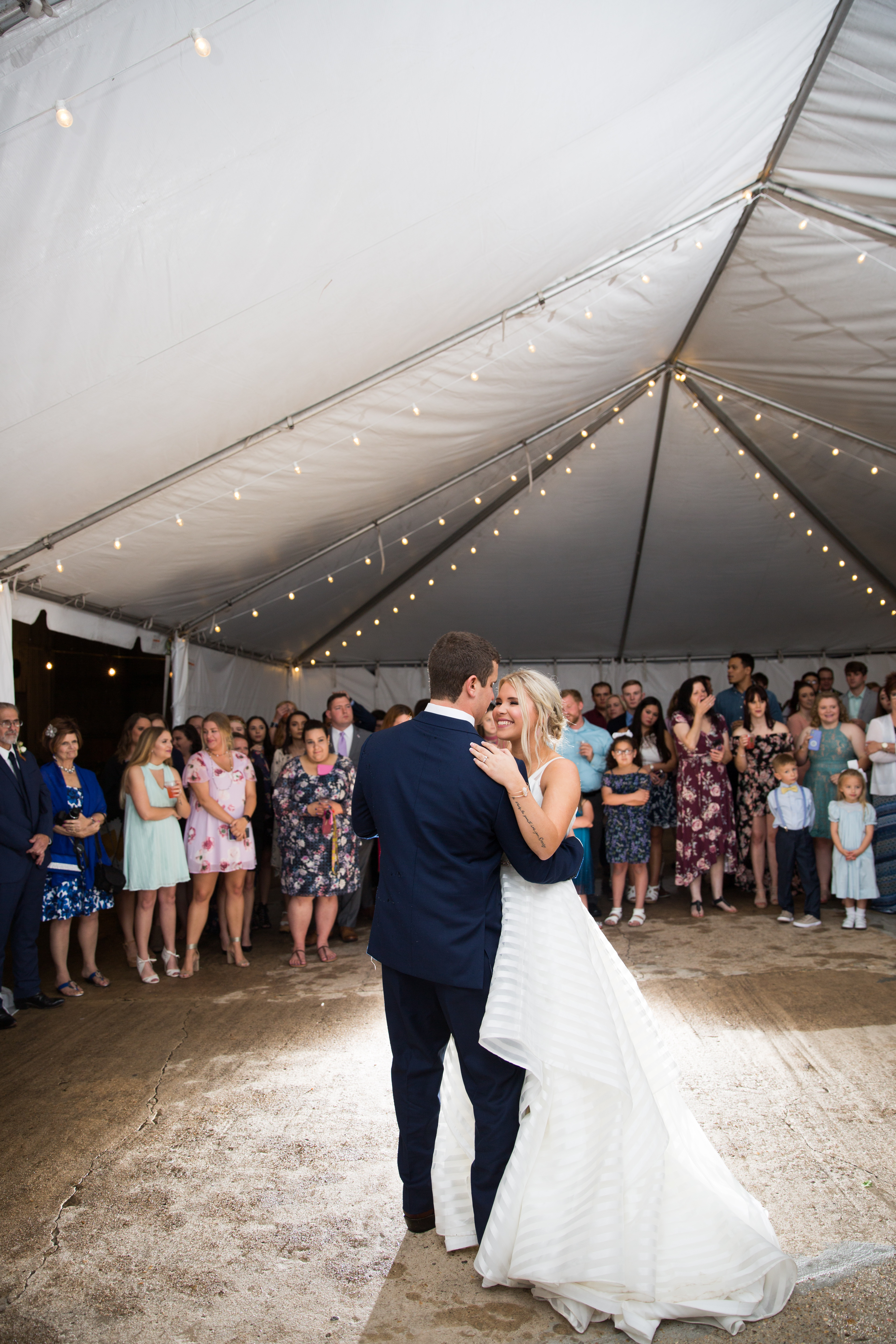 “The rain held off until the reception was really underway and then the sky fell,” she recalls. “But, our smiles never faded, the music never stopped and the storm definitely didn’t rain on our parade!”