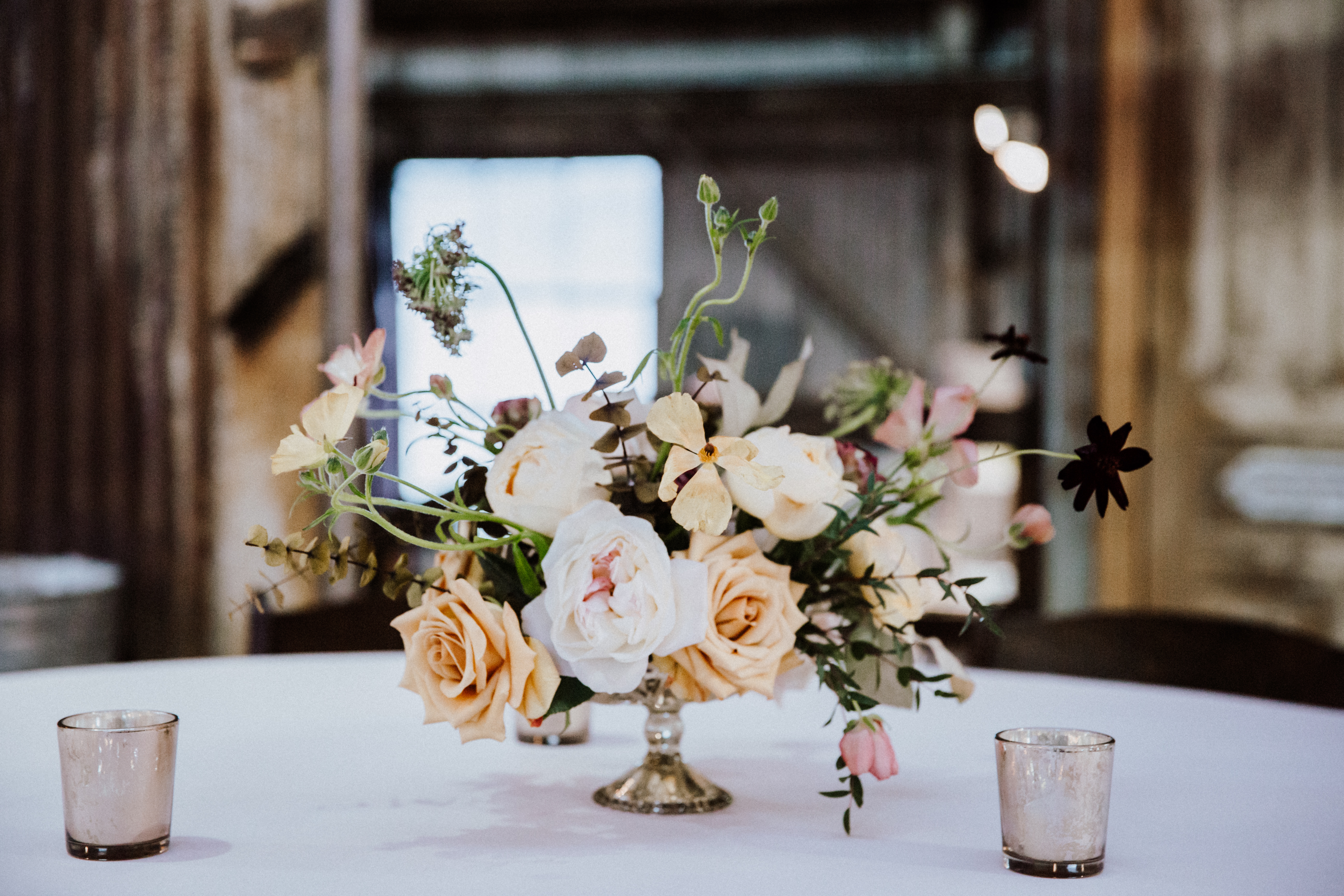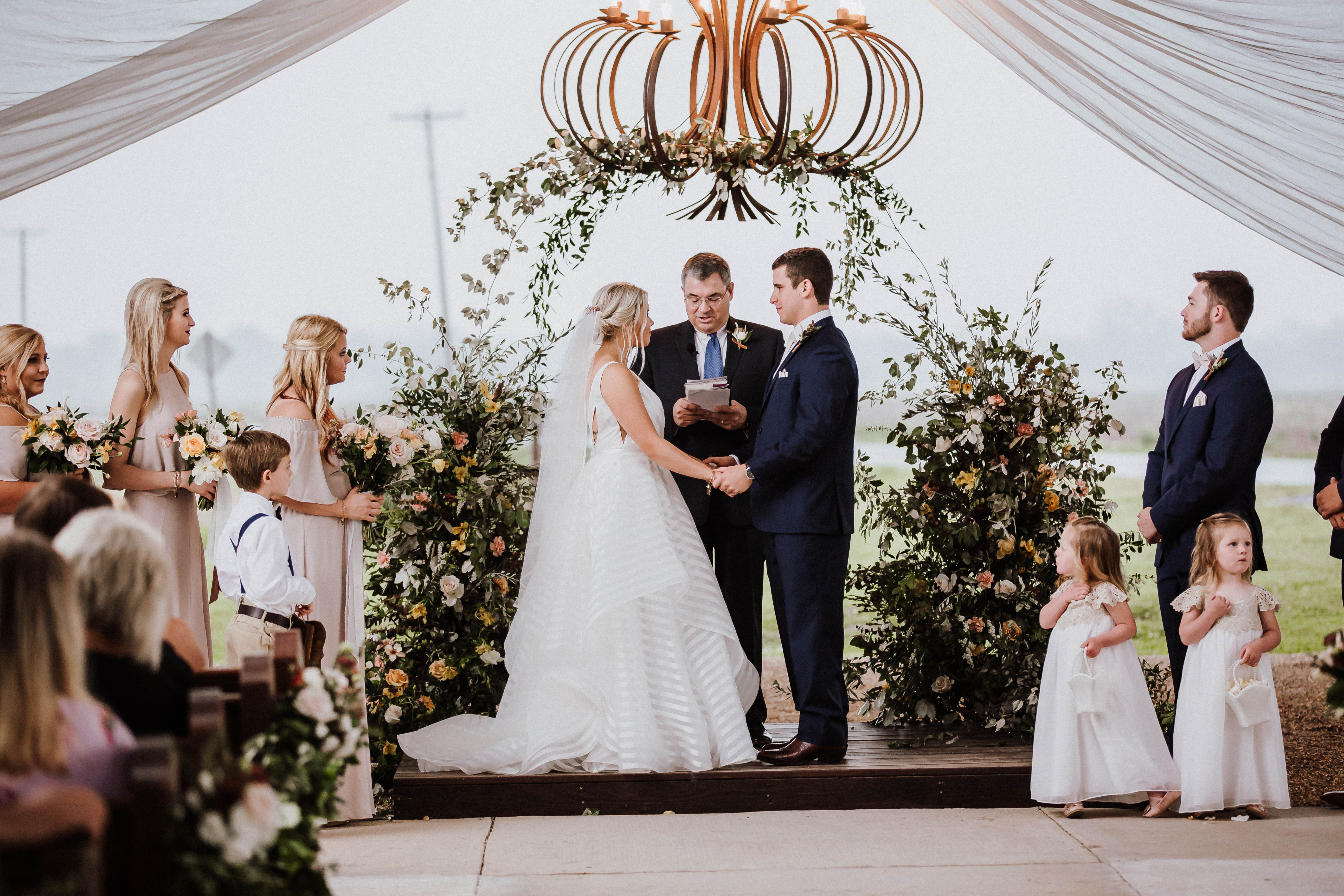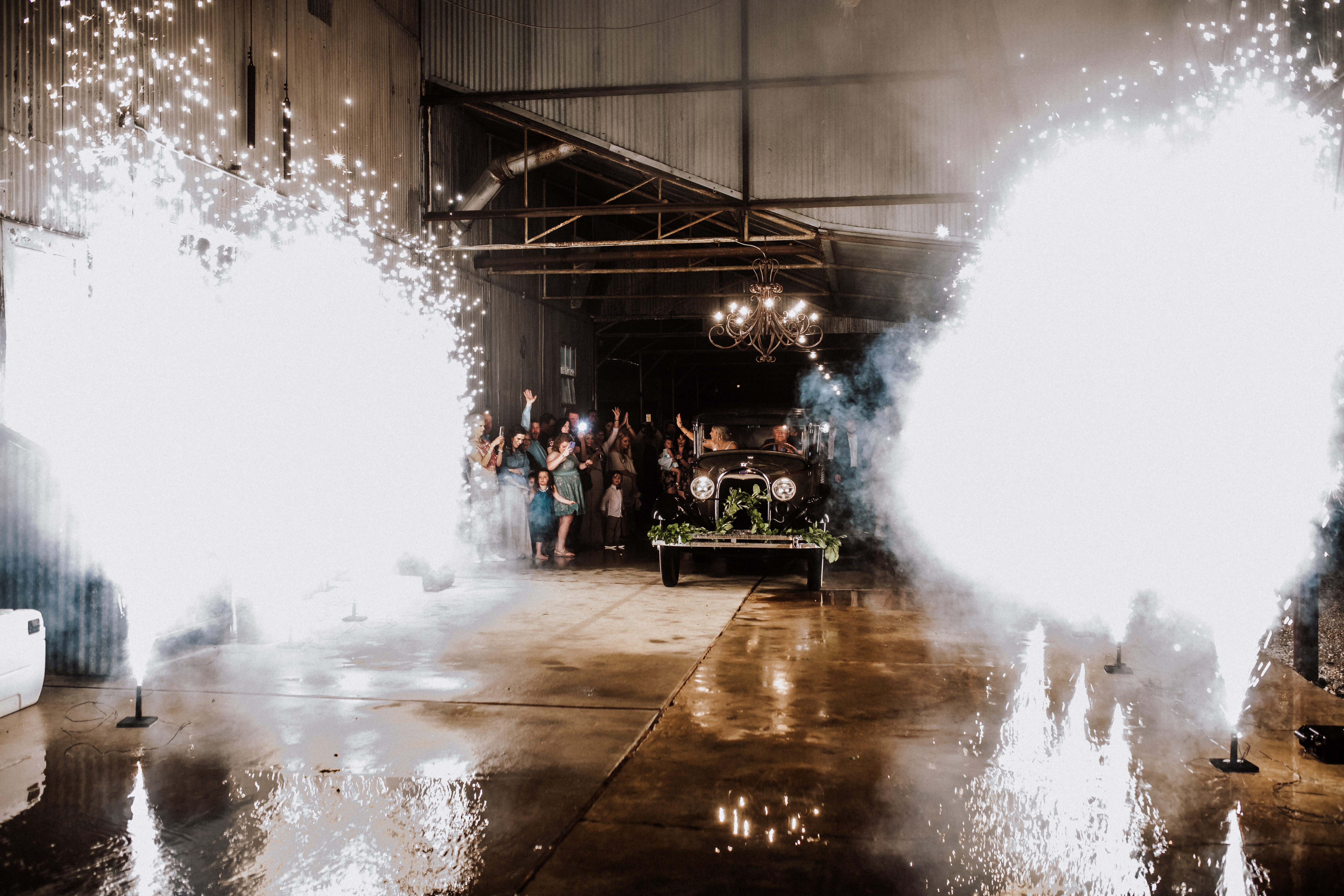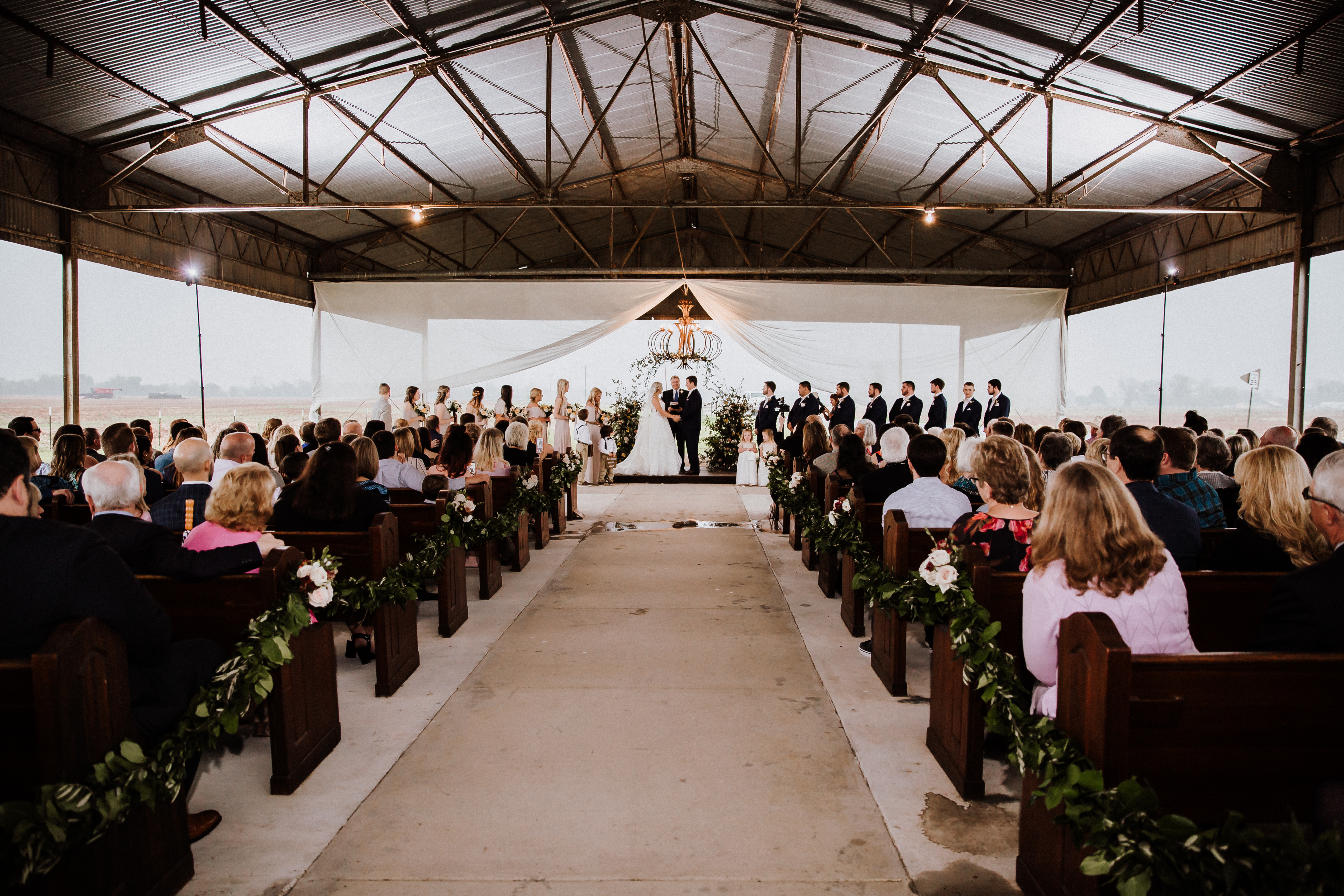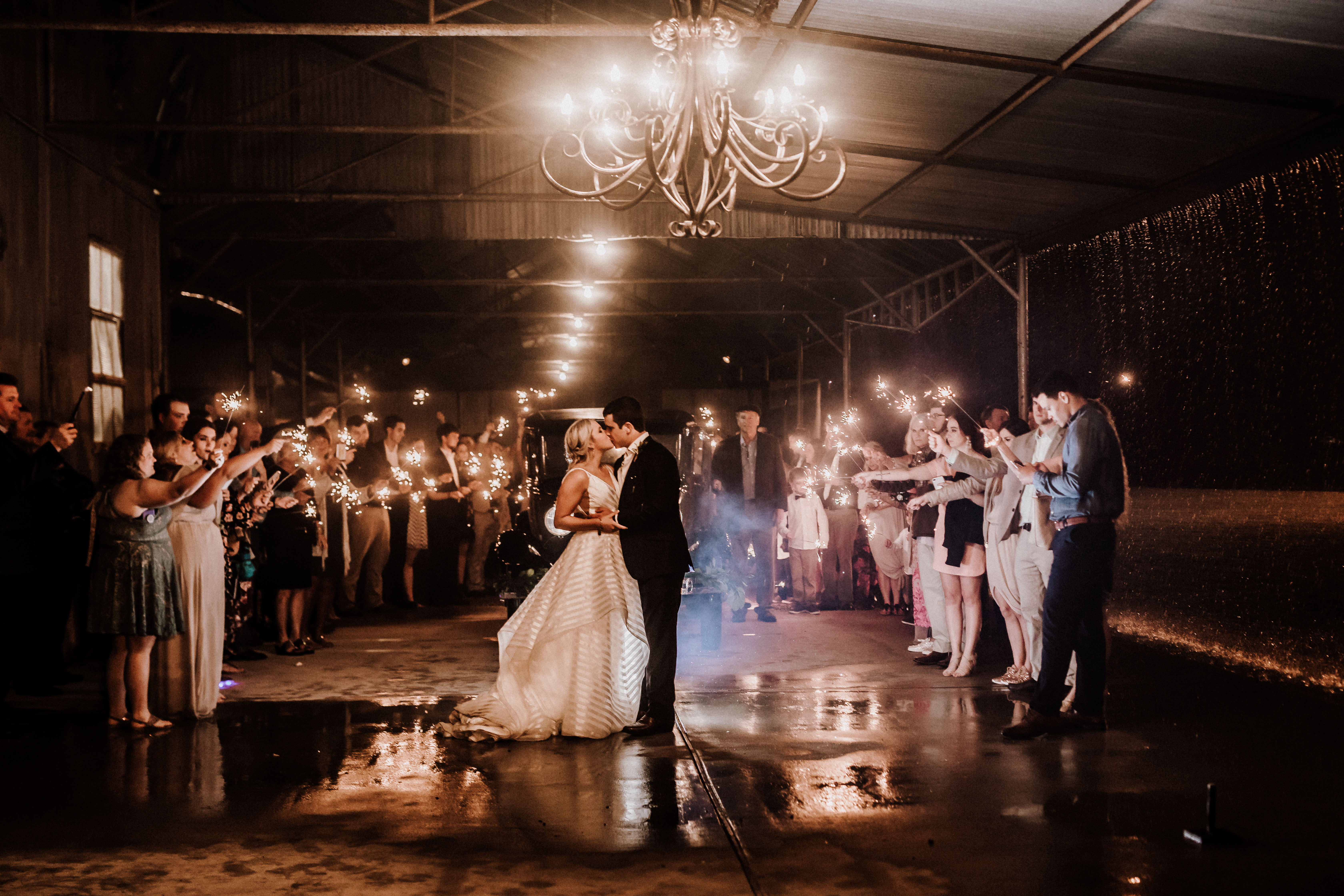 And while the storm raged outside the couple’s rustic venue, Alex explains that a little bit of water couldn’t stop the celebration.