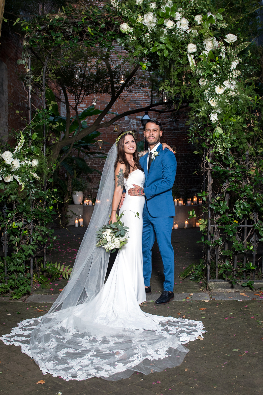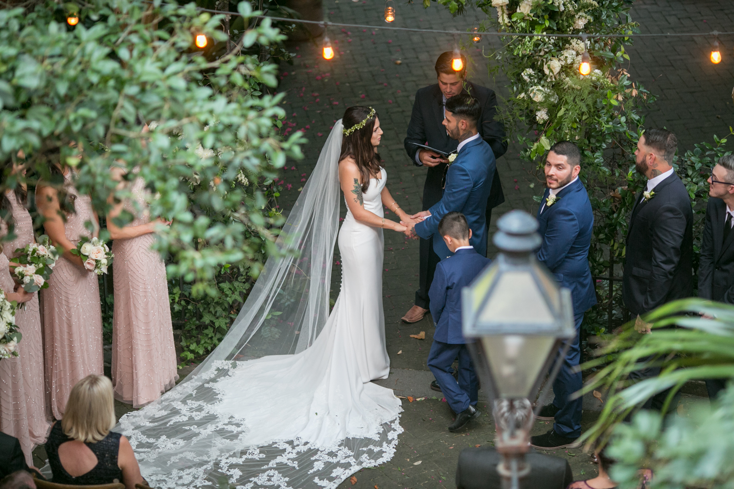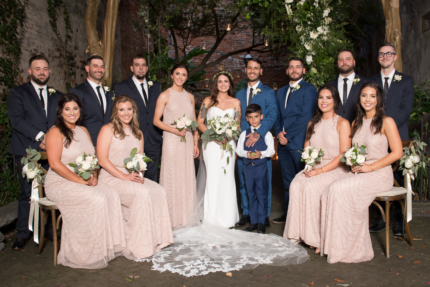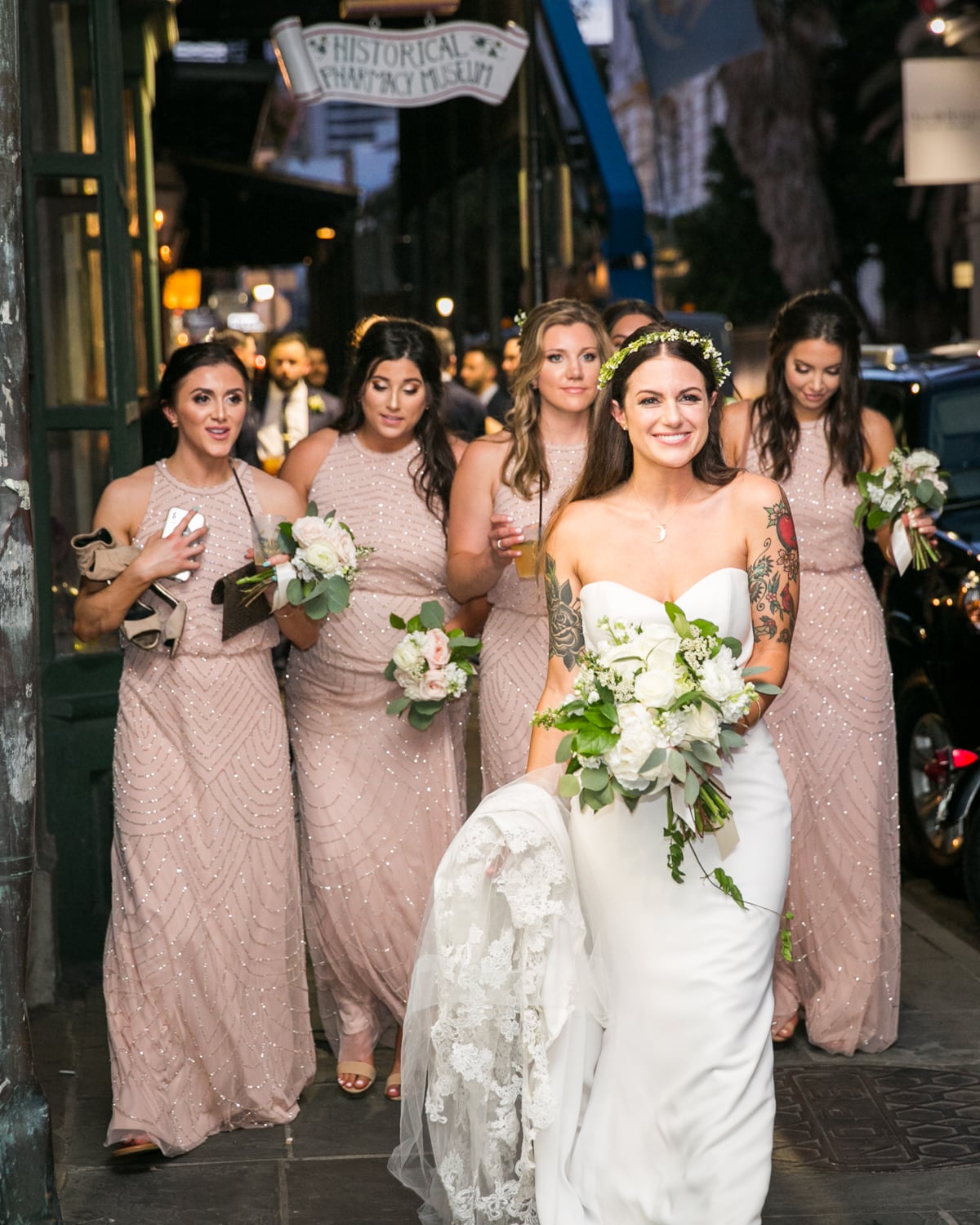 “We chose the New Orleans Pharmacy Museum for our ceremony and Muriel’s in Jackson Square for our reception because both venues are a great mixture of traditional and eclectic, just like us,” explains Gabrielle. “The elegance of a courtyard ceremony set within the oddity of the museum was such a perfect harmony of our personalities. And, Muriel’s is so stylish, with an ambiance that is romantic and haunting. We’re both bookworms and loved the history behind our venue choices. The spaces were intimate enough to savor the little moments, but roomy enough for everyone to move around and enjoy themselves.”