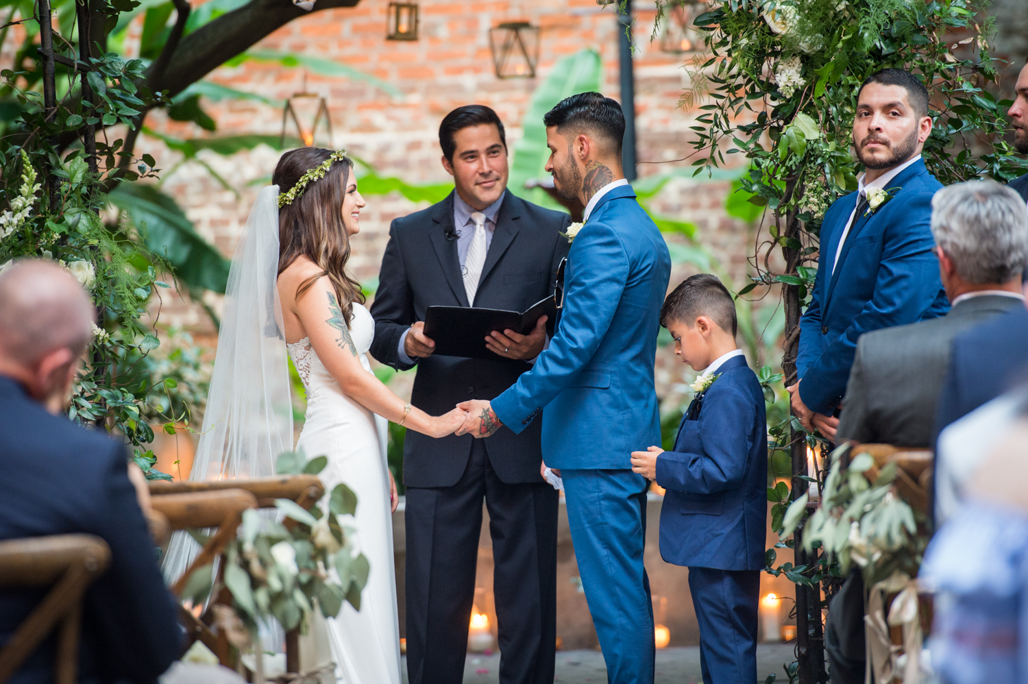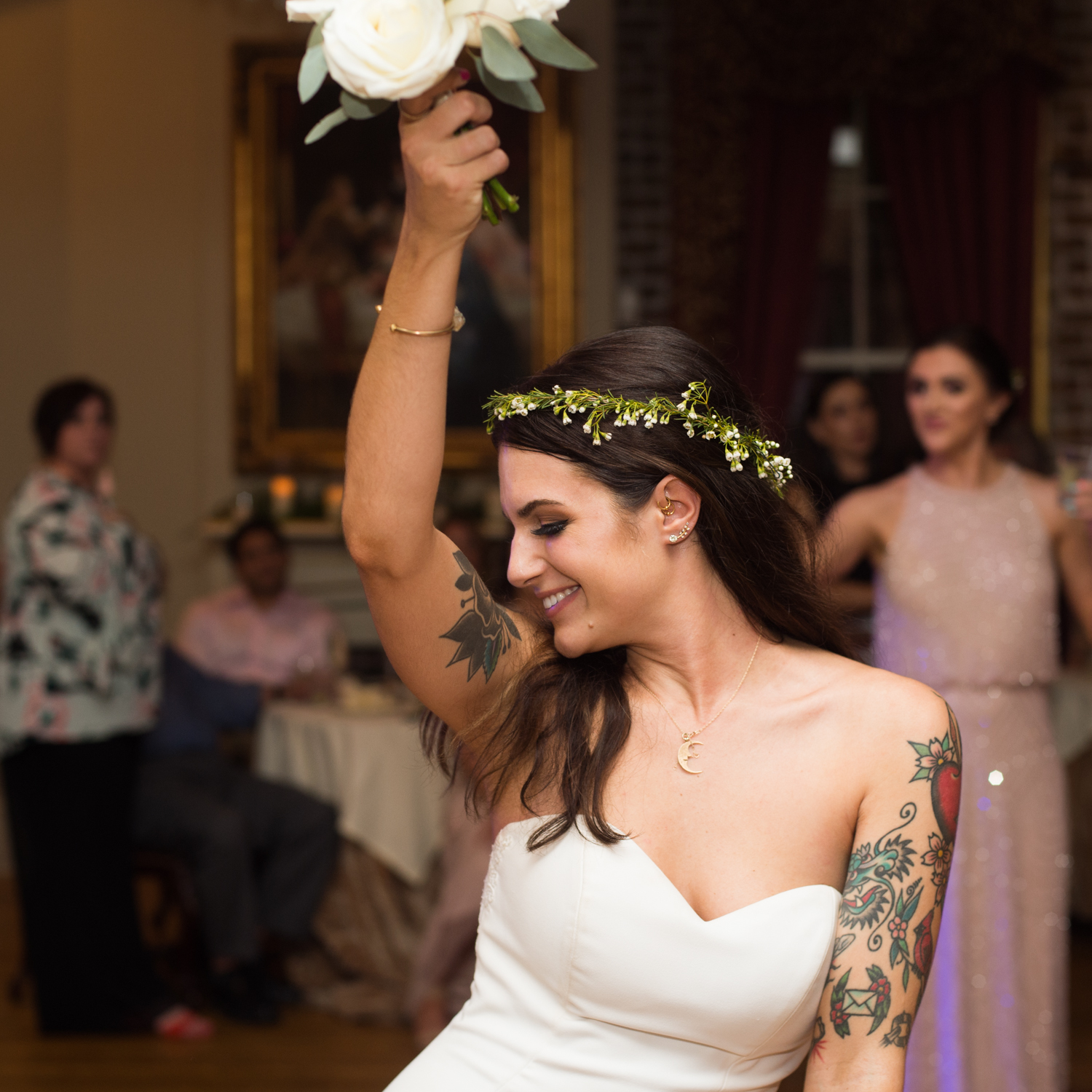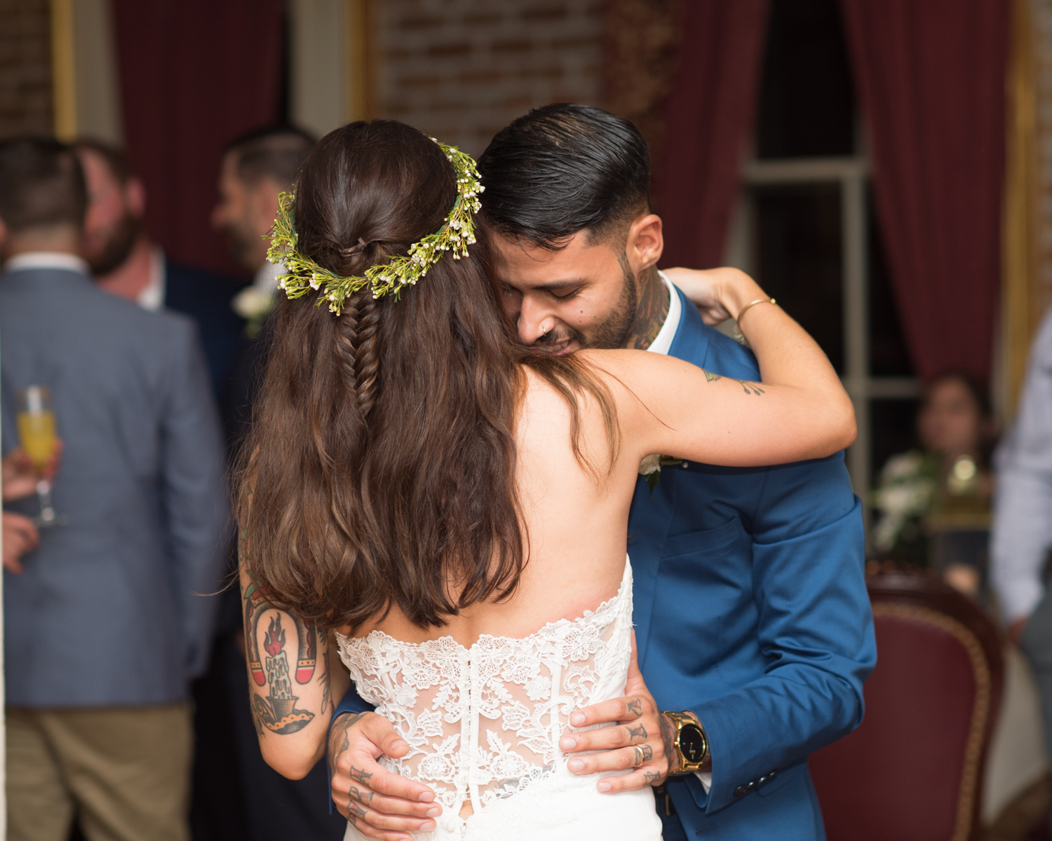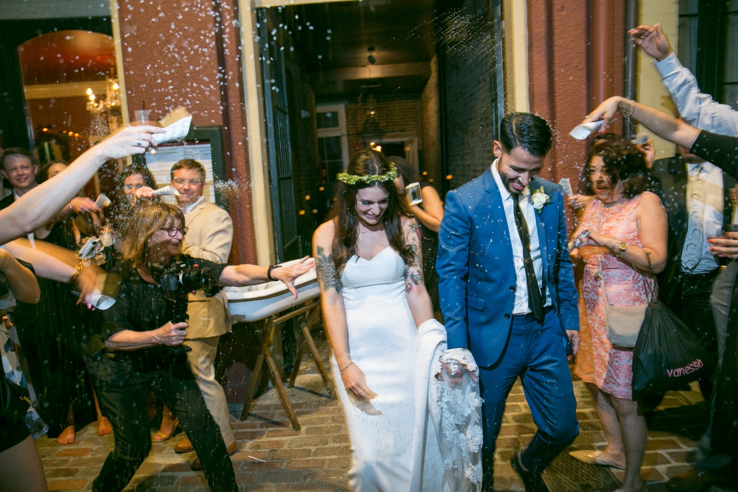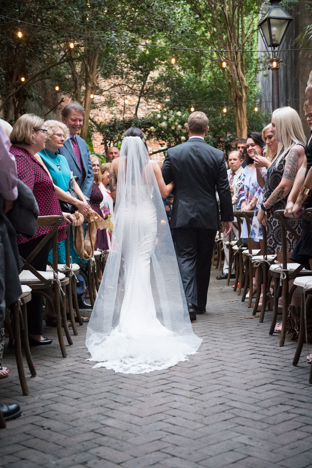 “We chose the New Orleans Pharmacy Museum for our ceremony and Muriel’s in Jackson Square for our reception because both venues are a great mixture of traditional and eclectic, just like us,” explains Gabrielle. “The elegance of a courtyard ceremony set within the oddity of the museum was such a perfect harmony of our personalities. And, Muriel’s is so stylish, with an ambiance that is romantic and haunting. We’re both bookworms and loved the history behind our venue choices. The spaces were intimate enough to savor the little moments, but roomy enough for everyone to move around and enjoy themselves.”