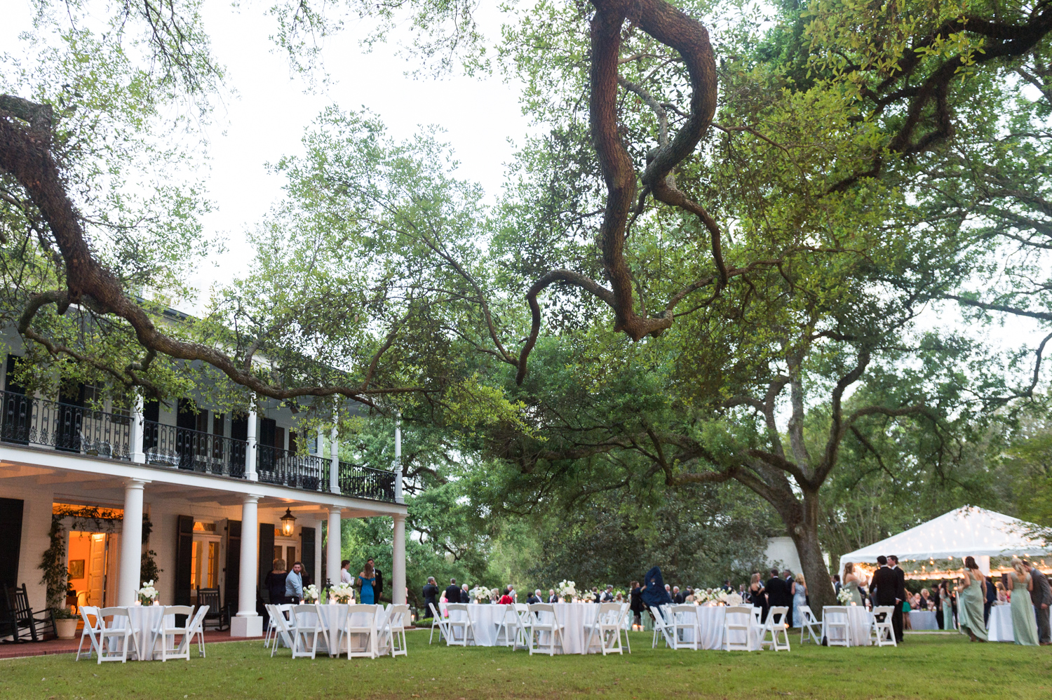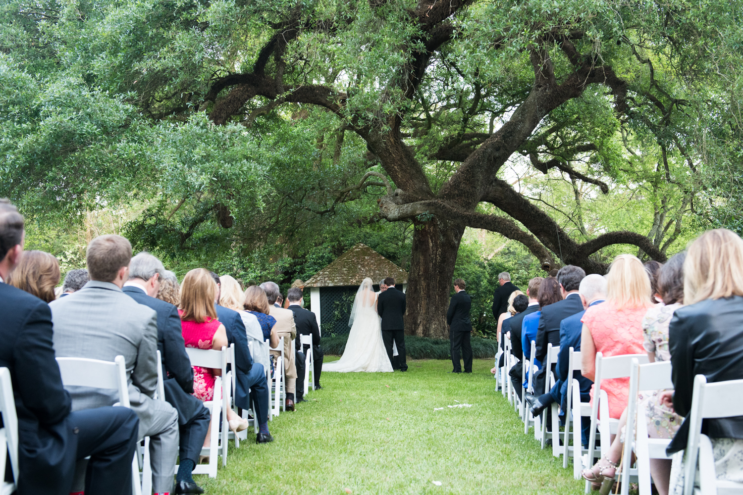 Under the estate’s large oak tree, the couple exchanged vows in front of friends and family on a sunny spring afternoon.