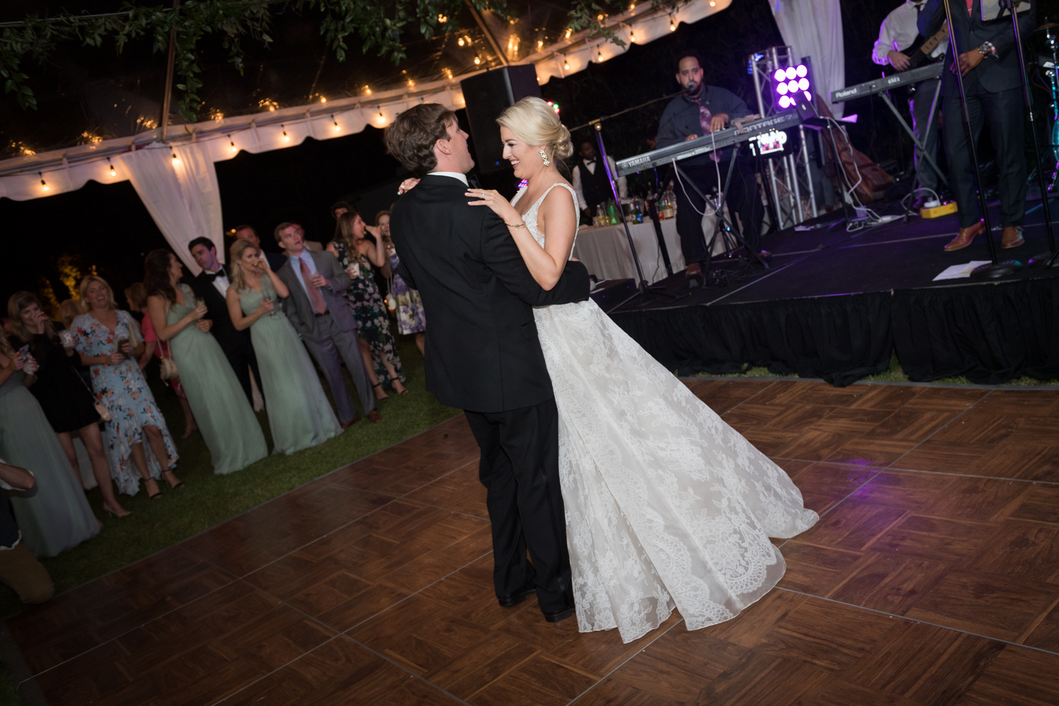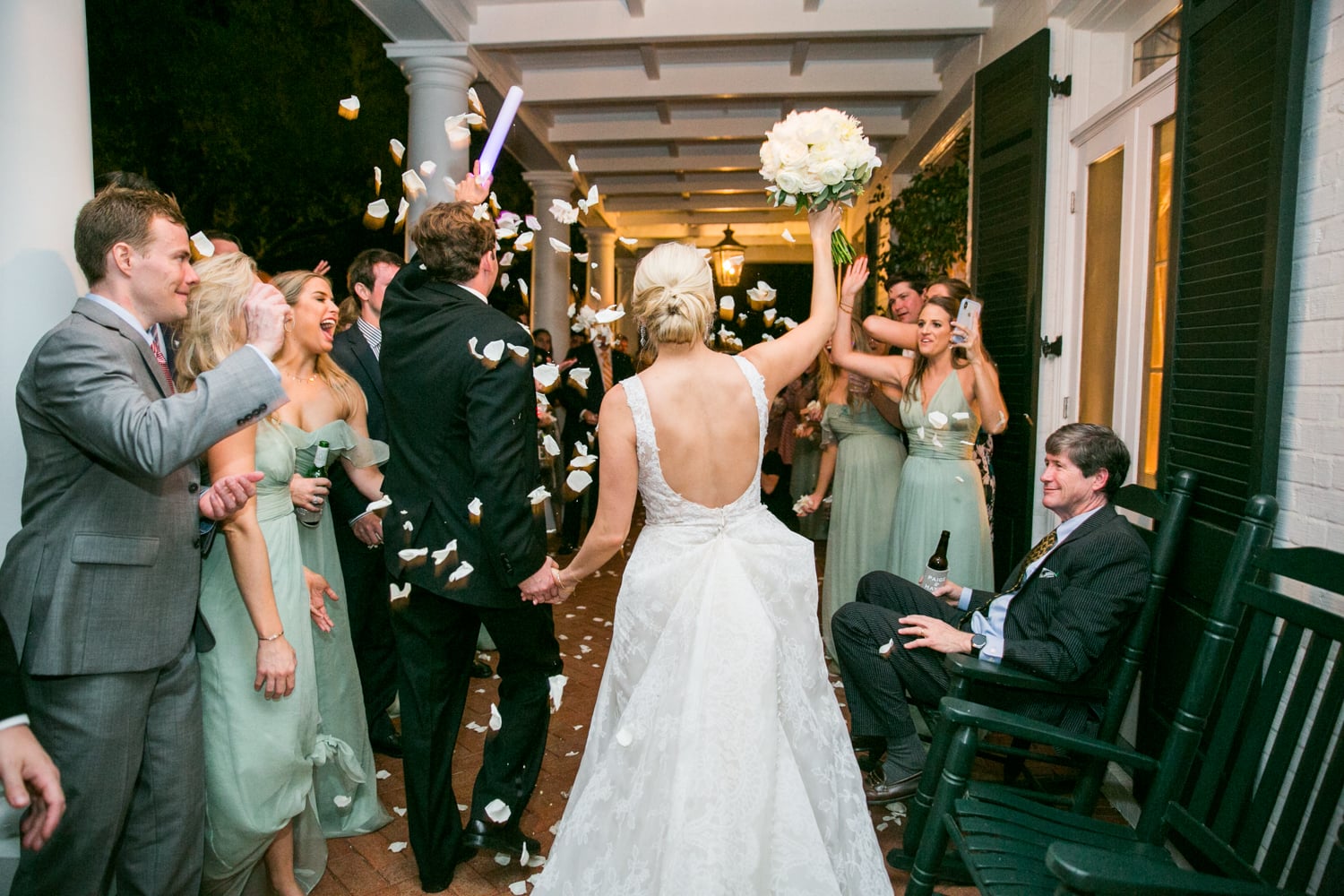 “The bourbon we buried to keep the rain away must have really worked because it was a gorgeous sunny spring day surrounded by our loved ones,” she recalls. “Following the ceremony, before The Rewind Band got the party started, my late grandfather made the most beautiful toast. That is a moment I will always cherish.”