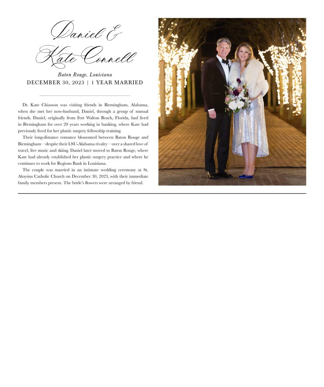 New for January 2026 is the option to include a brief paragraph with your two-page paid wedding announcement. We are so excited to offer newlyweds and their families the opportunity to share their stories and all of the wonderful and sentimental details that went into their big days.