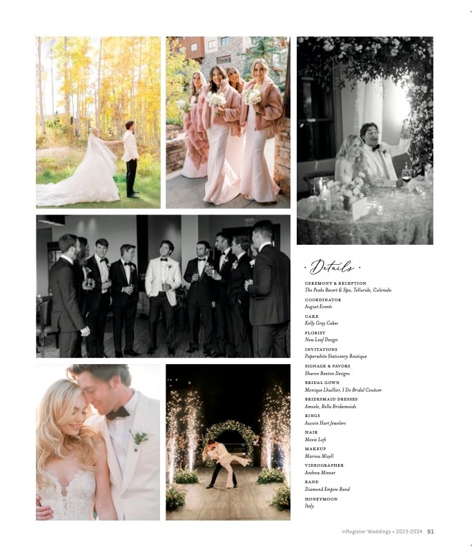 CLICK HERE to see the available packages. The submission deadline for the January 2026 inRegister Weddings issue is November 21, 2025. Questions? Email [email protected].