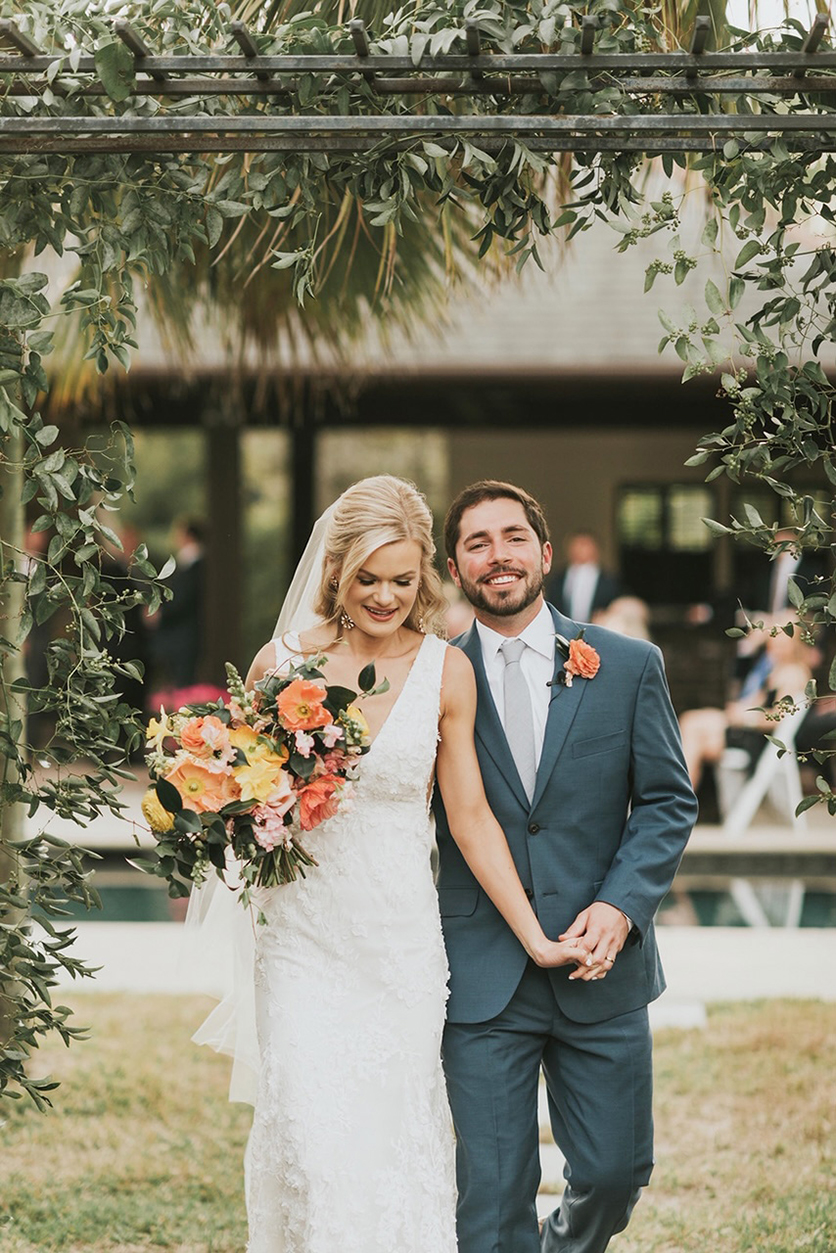 “Our COVID-19 wedding experience was slightly different from others,” says Claire of her big day, which happened at the onset of the pandemic. “We were notified the day before that there would be a restriction on the amount of people who could be in attendance. Surrounded by our closest friends and family, we were able to exchange vows in an intimate backyard setting. This experience has taught us the truth behind the statement, ‘All you need is love.’ At the end of the day, it all comes down to what matters most: the promise you make to the love of your life.”