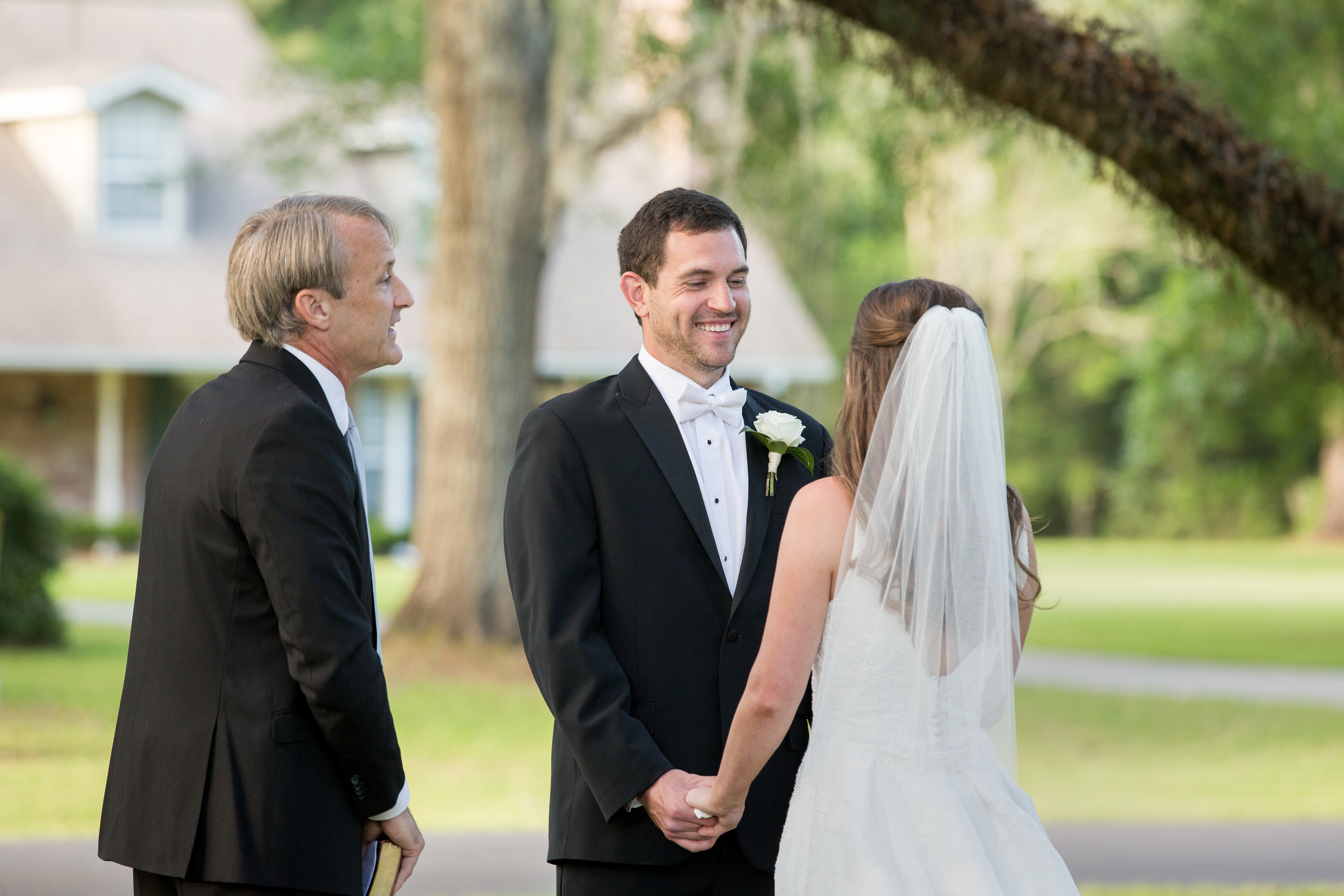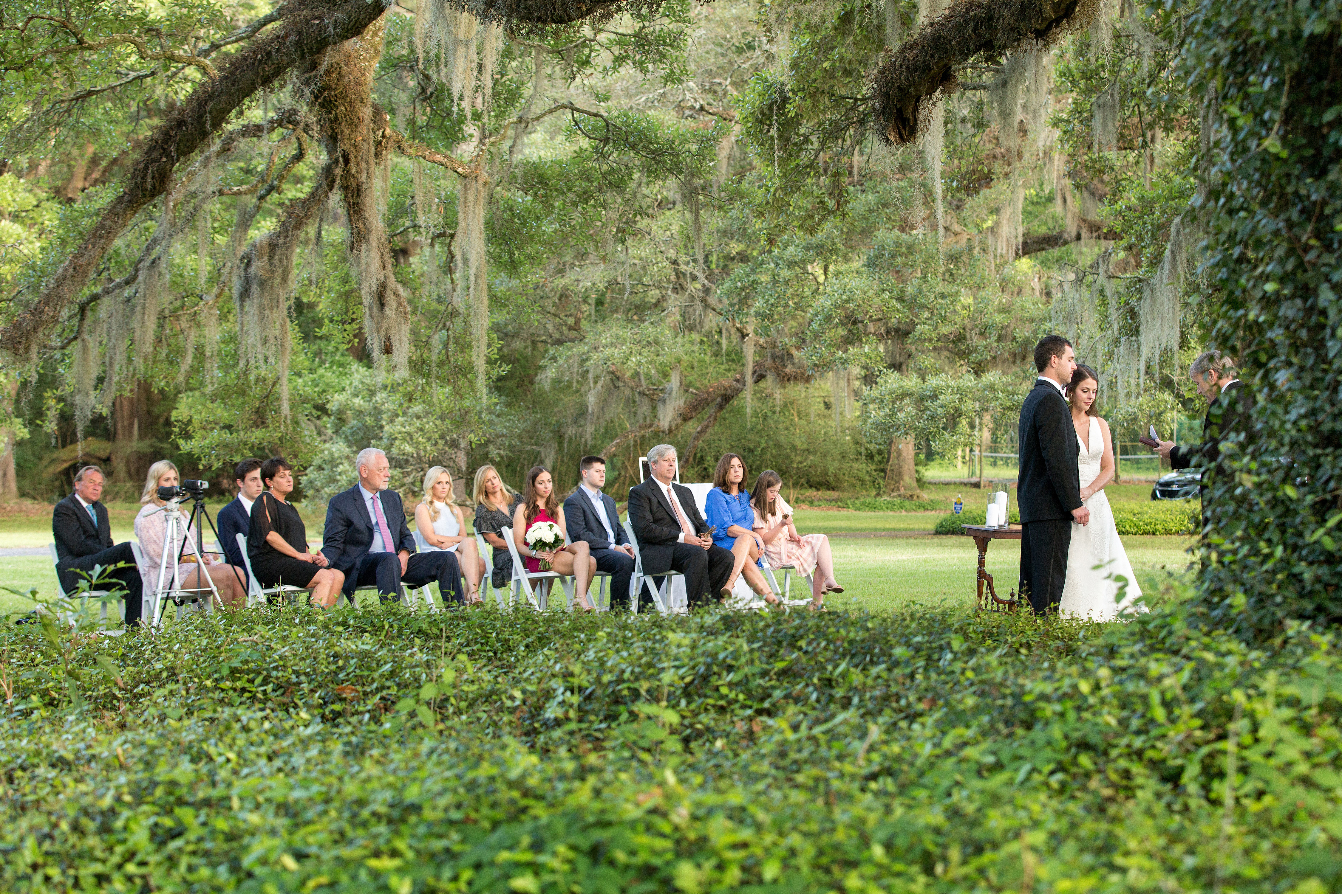 “My husband and I were beyond disappointed at first that we would not be able to have the big, fun wedding with all of our family and friends,” says Emily of the ceremony that was held in her grandmother’s front yard, followed by a reception at her parents’ house. “We were only able to have our immediate families present, but our extended family Zoomed in, and my sister put together a video of clips of all of our wedding party telling their favorite stories from our friendships, which made it so special. Ultimately, we felt loved and cherished on our big day, which is exactly what we hoped for.”