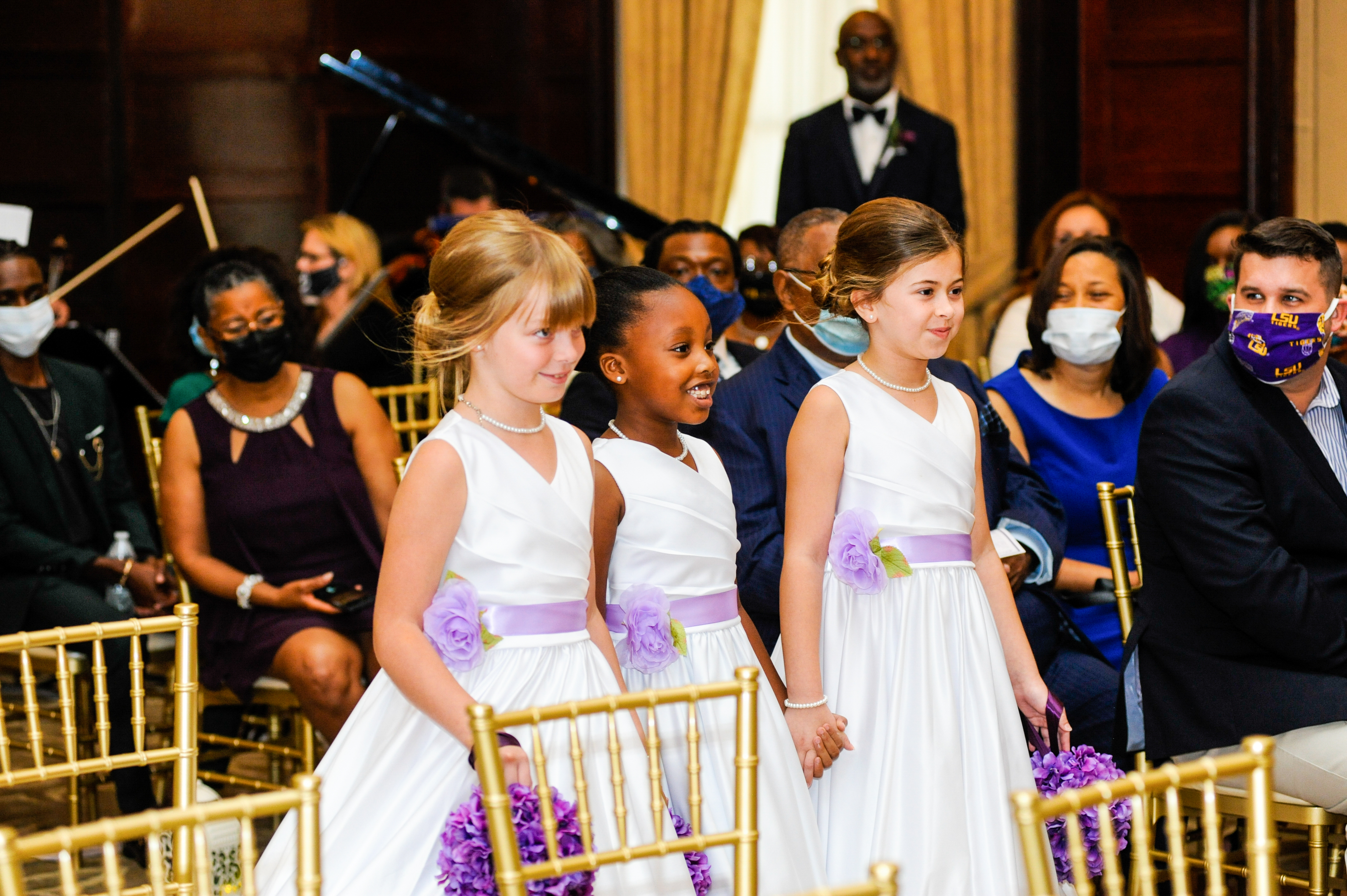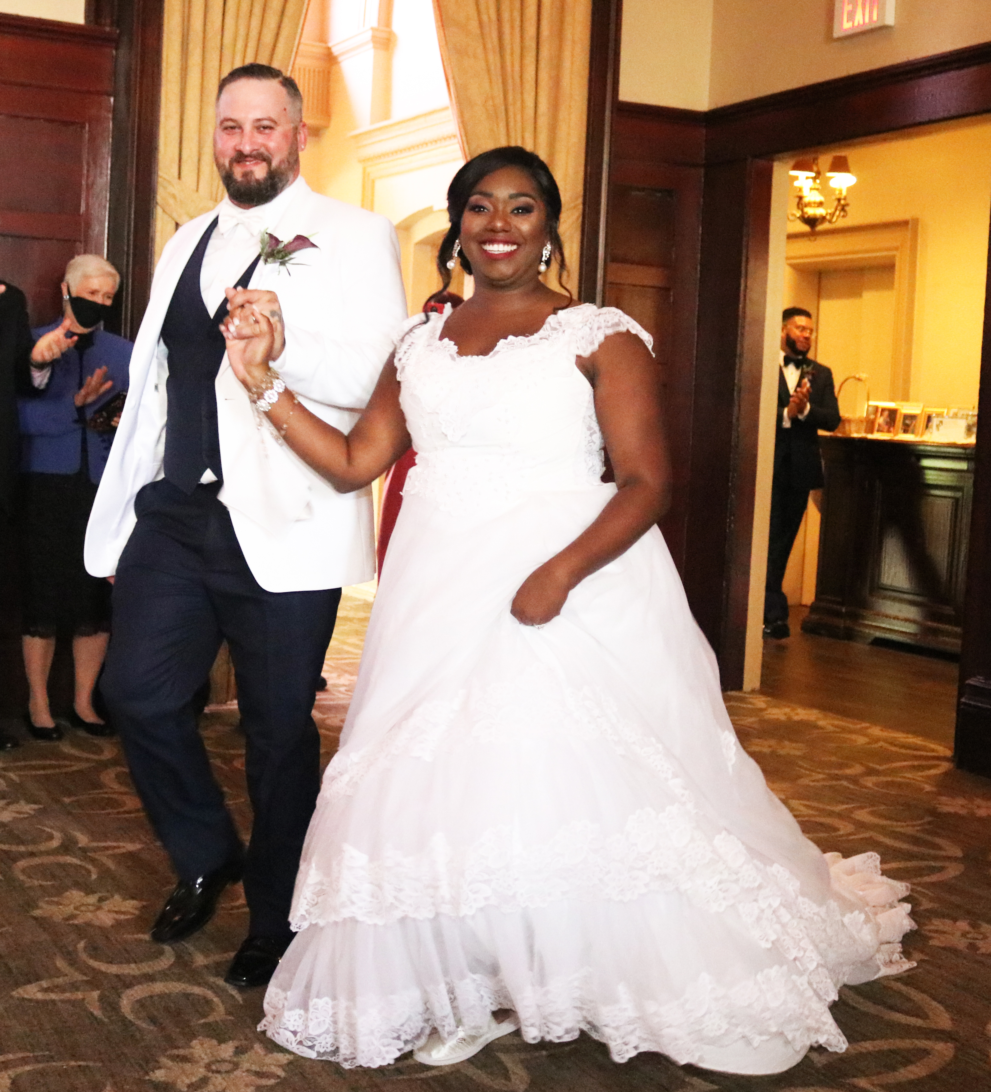 “We originally chose April 18 and I remember telling my mother that I researched and found that nothing would be going on that weekend. Well, I was correct. Absolutely nothing was going on that weekend due to COVID-19,” Jamie says. “My mom is the ultimate planner and she had everything ready to go by February. When it became apparent that we would have to postpone, we chose June 27, prayed about it and took the leap of faith. Our day was absolutely perfect with perfect weather, perfect social distancing and perfect masks. Everyone had a beautiful and memorable time.”