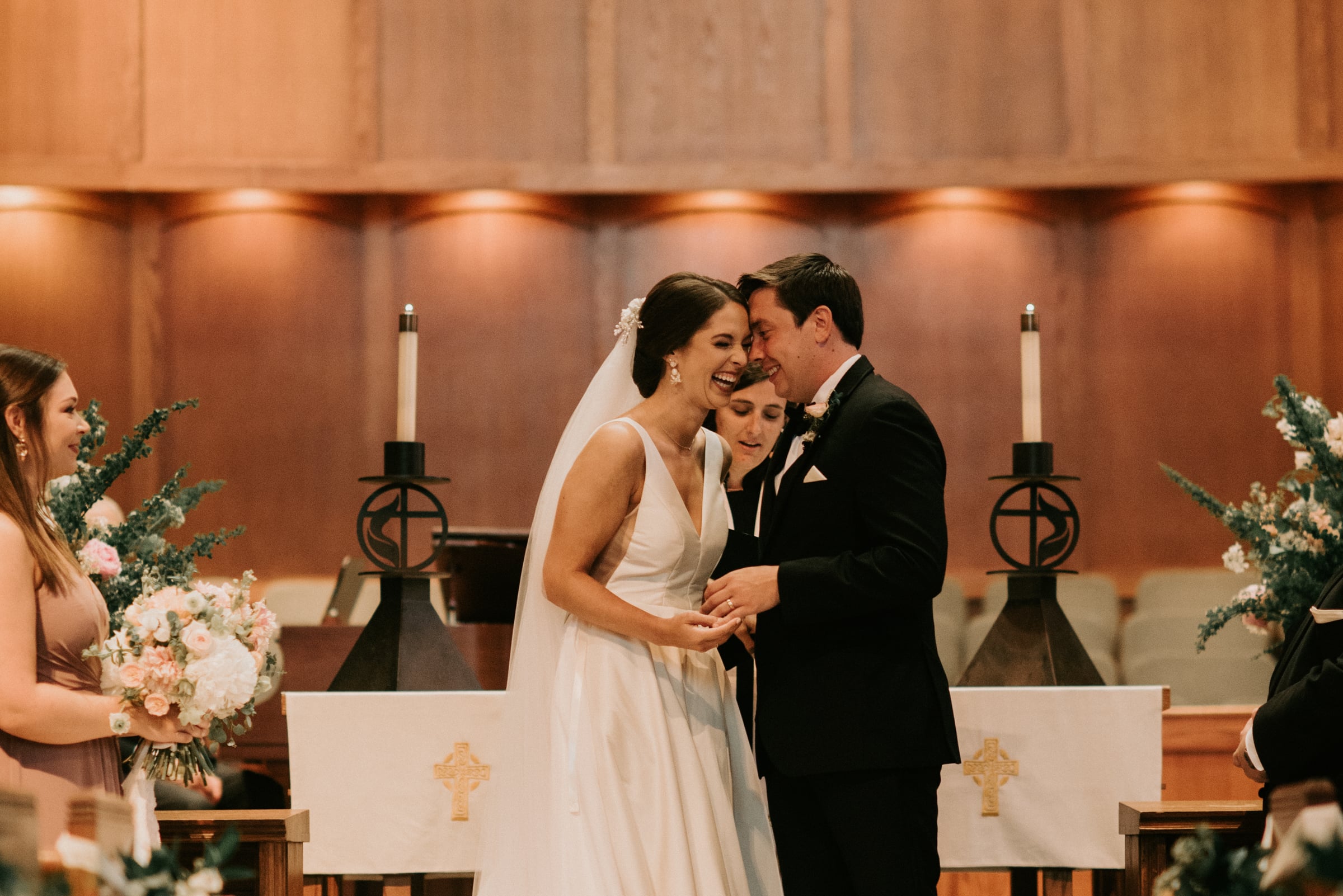 “We found that planning a wedding during this time was as crazy as it sounds,” says Rachel. “I remember a particular night when Nick was cheering me up with one of his corny jokes that I realized that I would want to be married on June 6 no matter the circumstances. We decided to get married on our date regardless of if it was just with our smiling parents or if it was with 100 people doing the Wobble. We could not have asked for a more perfect day that was made even more special by a double rainbow sitting over Lod Cook as we made our way to the reception.”