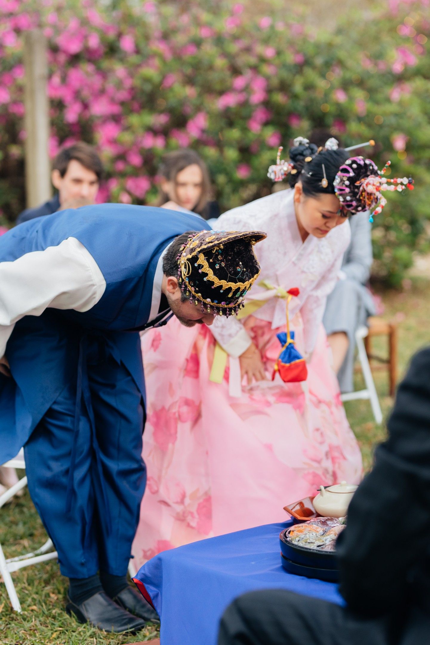 The bowing: The bride and groom pay their respects to the parents by bowing in unison.